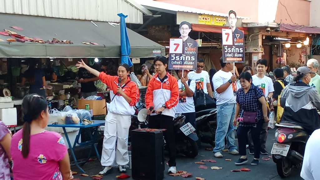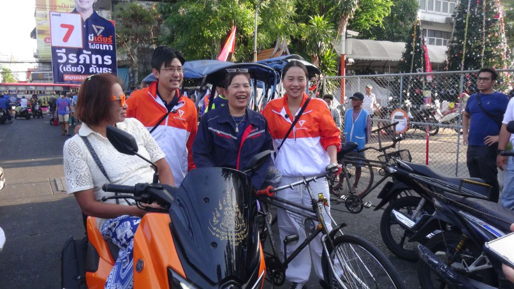 สำหรับเขตเลือกตั้งที่ 6 จังหวัดสมุทรปราการ พรรคประชาชนส่งนายวีรภัทร คันธะ หรือ เดียร์ ลงสมัครรับเลือกตั้งในหมายเลข 7 ขณะที่พรรคประชาชนมีหมายเลขพรรค 46 โดยหลังการเดินพบปะประชาชน ทีมผู้สมัครได้ขึ้นรถขยายเสียงแนะนำตัว พร้อมกล่าวถึงแนวนโยบายของพรรคในการพัฒนาประเทศ และยกระดับคุณภาพชีวิตประชาชนในพื้นที่ ที่มีสมาชิกสภาผู้แทนราษฎรของพรรคดูแล