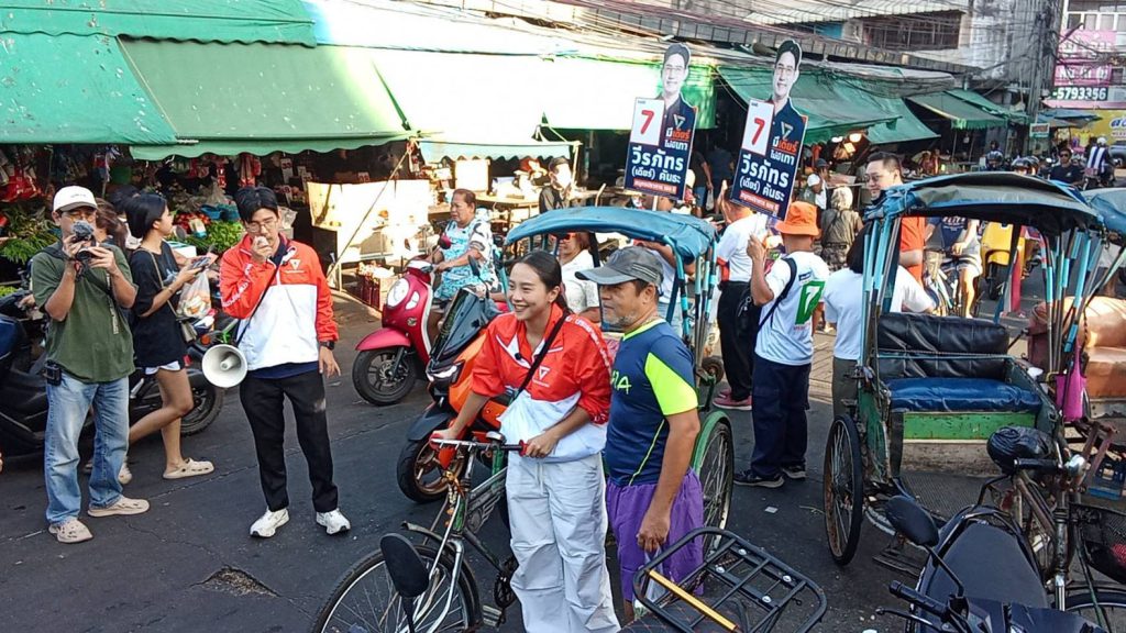 เมื่อเวลา 09.00 น. วันที่ 3 มกราคม 2569 ที่ ตลาดเทศบาลเมืองพระประแดง จังหวัดสมุทรปราการ นางสาวรักชนก (ไอซ์) ศรีนอก นำทีมพร้อมด้วย นายวีรภัทร คันธะ (เดียร์) ผู้สมัครสมาชิกสภาผู้แทนราษฎร จังหวัดสมุทรปราการ เขต 6 ลงพื้นที่พบปะประชาชน โดยได้ปั่นรถสามล้อ เข้าพื้นที่ตลาดสดเทศบาลเมืองพระประแดง เพื่อแนะนำตัวและขอคะแนนเสียงให้กับผู้สมัครพรรคประชาชน