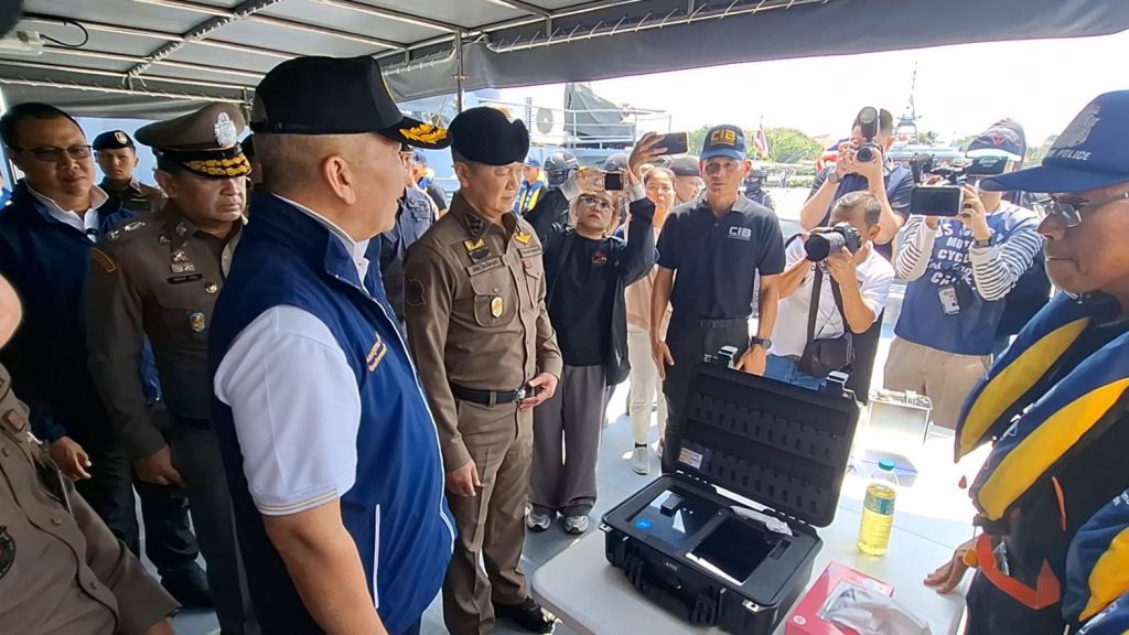 จึงมาตรวจเยี่ยมทางตำรวจน้ำ ซึ่งจากการลงพื้นที่และที่ได้รับรายงาน พบว่ามีปัญหาเรื่องของน้ำมันเขียว ที่จะนำข้อมูลต่างๆที่เกิดขึ้นเข้าสู่ที่ประชุมใหญ่ พร้อมทั้งสั่งกำชับเฝ้าระวังการกระทำผิดเกี่ยวกับการลักลอบน้ำมันเขียวที่ลักลอบจำหน่ายผิดกฎหมาย