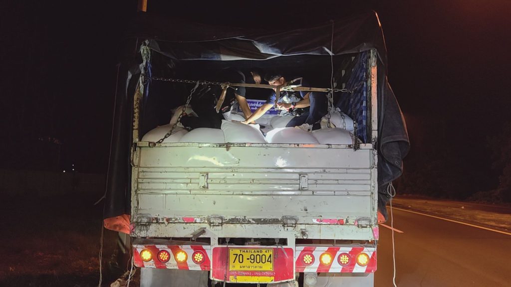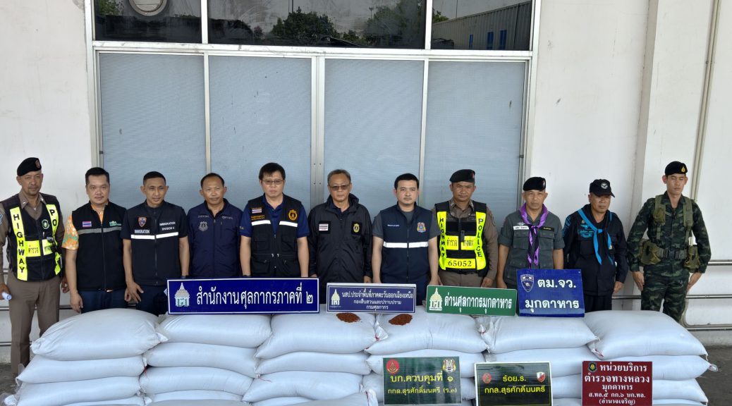 การตรวจค้นเกิดขึ้นบริเวณหน้าด่านกักกันสัตว์มุกดาหาร ถนนชยางกูร หมายเลข 212 ตำบลคำอาฮวน อำเภอเมือง จังหวัดมุกดาหาร พบสินค้าประเภท “ข้าวมะลิแดง” บรรจุกระสอบจำนวนมาก น้ำหนักรวมประมาณ 15,000 กิโลกรัม มูลค่ากว่า 900,000 บาท บรรทุกมาเต็มคันรถ