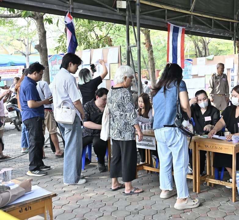 สมาชิกสภาผู้แทนราษฎร (สส.) ในการเลือกตั้งล่วงหน้านอกเขต และในเขตจังหวัดนครปฐม ณ บริเวณข้างหอประชุมอำเภอนครชัยศรี จังหวัดนครปฐม ซึ่งเป็นสถานที่เลือกตั้งล่วงหน้าในเขต นอกเขตเลือกตั้งที่ 5 ของจังหวัดนครปฐม