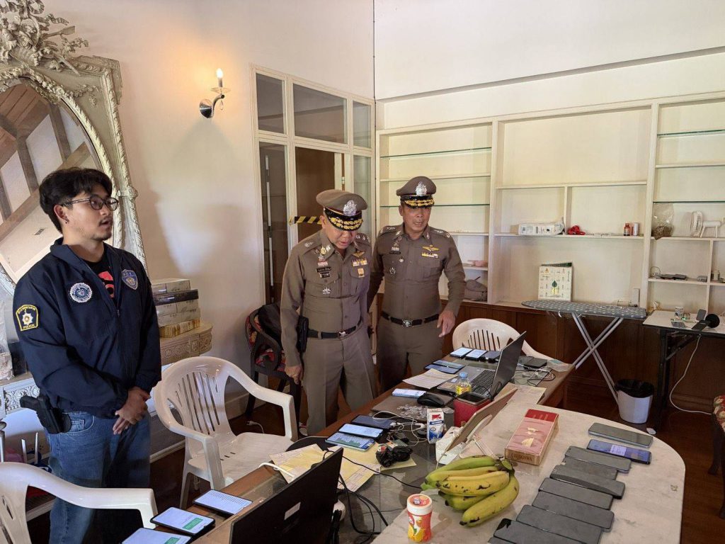จากการตรวจสอบที่เกิดเหตุ พบว่า ผู้ต้องหาทั้งหมดแอบอ้างเป็นคอลเซ็นเตอร์ (จีนหลอกจีน) อ้างตัวเป็นเจ้าหน้าที่ส่งพัสดุ (SMS) หลอกลวงว่ามีพัสดุตกค้าง หรือ เจ้าหน้าที่ประกัน เพื่อโทรสอบถามเอาข้อมูล แอบอ้างยกเลิกกรมธรรม์ เมื่อเหยื่อหลงกลจะเข้าใจผิดว่าเหยื่อจะได้รับเงินประกันคืน จากนั้นจะมีการสนทนากับเหยื่อเพื่อหลอกลวงให้เกิดความเสียหายต่อทรัพย์สิน(เงิน) ของเหยื่อ โดยจะทำการสืบสวนขยายผลผู้ร่วมกระทำความผิดที่เกี่ยวข้องต่อไป