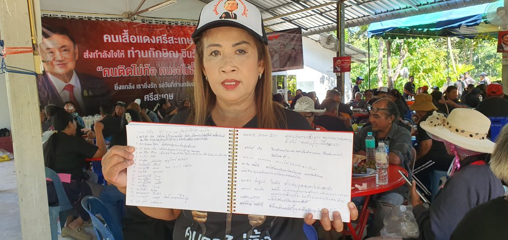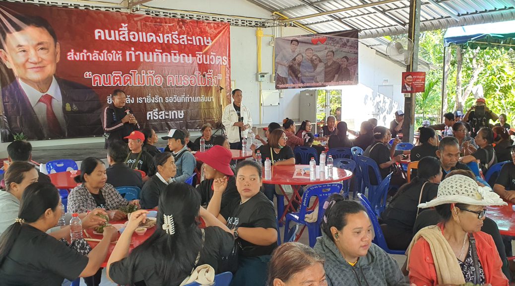 ***เมื่อวันที่ 1 ธันวาคม 2568 ที่ชมดาวรีสอร์ท ปาร์ทหมอสมคิด คลินิกเวชกรรมหมดสมคิด ตำบลห้วยทับทัน อำเภอห้วยทับทัน จังหวัดศรีสะเกษ กลุ่มเสื้อแดงศรีสะเกษ พร้อม กลุ่มเดอะเรด fc เพื่อไทย และกลุ่มมวลชนผู้มีใจรักในนายทักษิณ ชินวัตร อดีตนายกรัฐมนตรี กว่า 300 คน ร่วมทำกิจกรรม คนเสื้อแดงศรีสะเกษ ส่งกำลังใจให้ท่านทักษิณ ชินวัตร ที่ถูกจำคุกอยู่ในเรือนจำคลองเปรม “คนติดไม่ท้อ คนรอไม่ทิ้ง” ยิ่งแกล้ง เรายิ่งรอวันที่ท่านกลับมา โดยกิจกรรมมีแกนนำเสื้อศรีสะเกษ และส่วนกลาง ผลัดกันขึ้นปราศรัยให้มวลชนได้รับฟังถึงกิจกรรม และโจมตีรัฐบาล กิจกรรมรอบวงกินข้าวกับท่านทักษัณ กิจกรรมเขียนสมุดแดงส่งกำลังให้ท่านทักษิณ ซึ่งสมุดเล่มนี้จะนำไปให้ท่านทักษิณ ได้ดูและรับทราบว่าคนเสื้อแดงยังรัก และยังรอท่านทักษิณ กลับอยู่เสมอ