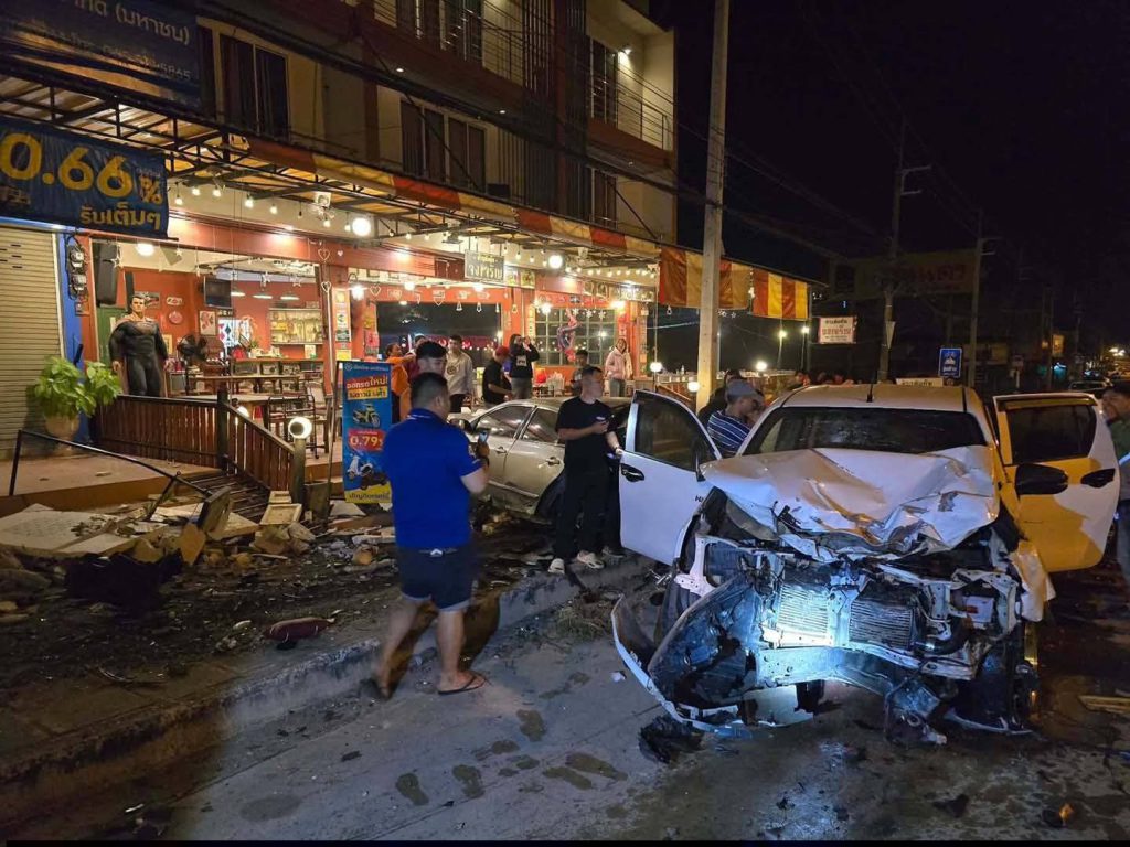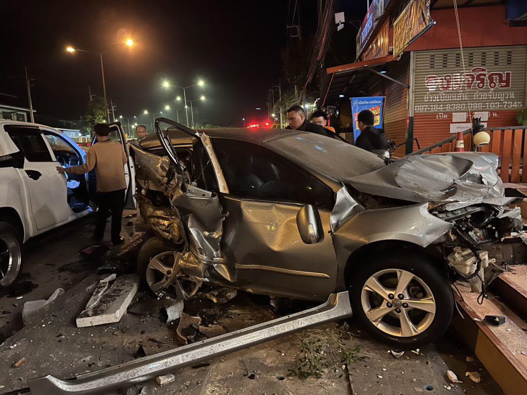 ซึ่งเป็นทางโค้ง ได้เสียหลักพุ่งชนรถที่จอดอยู่ข้างทางหน้าร้านข้าวต้ม ทำให้รถหลายคันได้รับความเสียหายดังกล่าว เจ้าหน้าที่อยู่ระหว่างตรวจสอบสาเหตุอย่างละเอียดและดำเนินการตามกฎหมายต่อไป