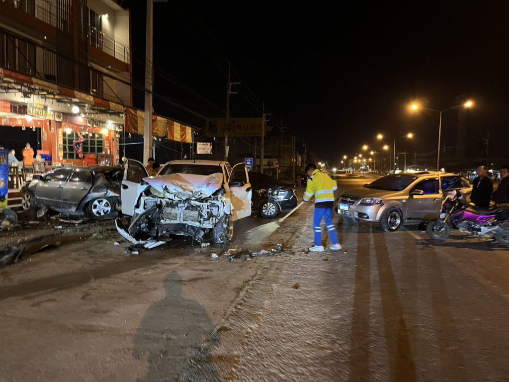 เมื่อเวลาประมาณ 03.20 น. วันที่ 1 มกราคม 2569 พ.ต.ท.ณรงค์ฤทธิ์ สุวะศรี สว.(สอบสวน) สภ.เมืองมุกดาหาร ได้รับแจ้งจากศูนย์วิทยุ สภ.เมืองมุกดาหาร ว่ามีอุบัติเหตุรถยนต์เฉี่ยวชนกันหลายคัน บริเวณทางโค้งหน้าร้านข้าวต้มกุ้ย “จงเจริญ” ถนนมุกดาหาร–ดอนตาล ตำบลศรีบุญเรือง อำเภอเมืองมุกดาหาร จังหวัดมุกดาหาร จึงรุดไปตรวจสอบที่เกิดเหตุ