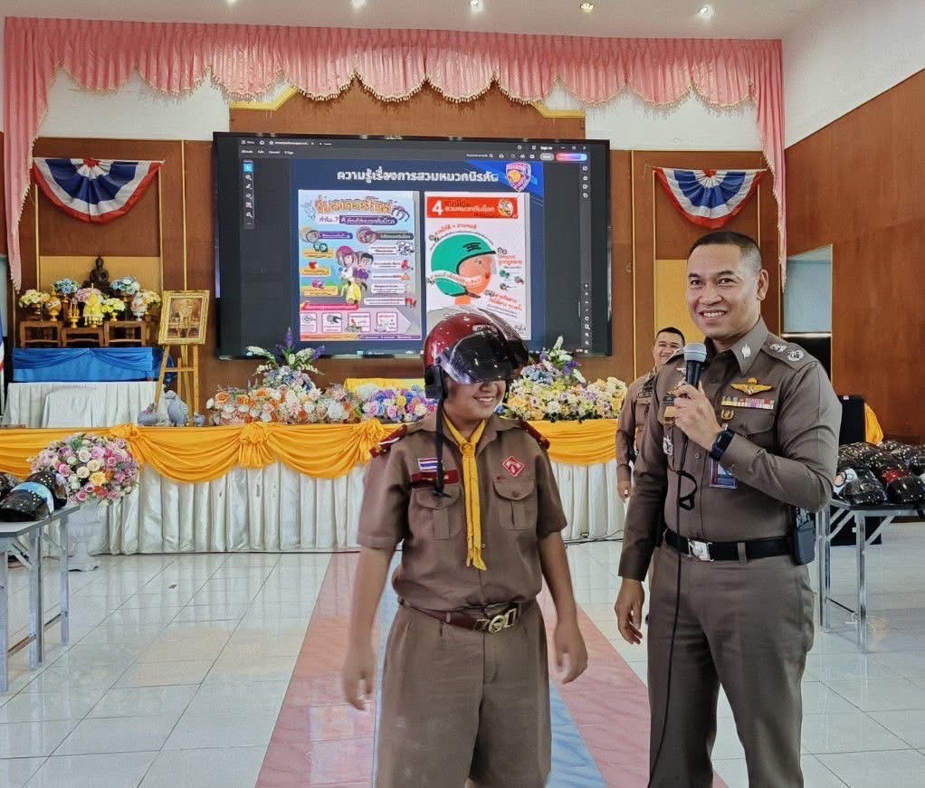 โดยมีกิจกรรมมอบหมวกนิรภัยตามโครงการ “สานต่อความห่วงใย ขับขี่ปลอดภัยทุกเส้นทาง” เน้นการสวมหมวกนิรภัย เพื่อลดความสูญเสียจากอุบัติเหตุจราจรทางบก