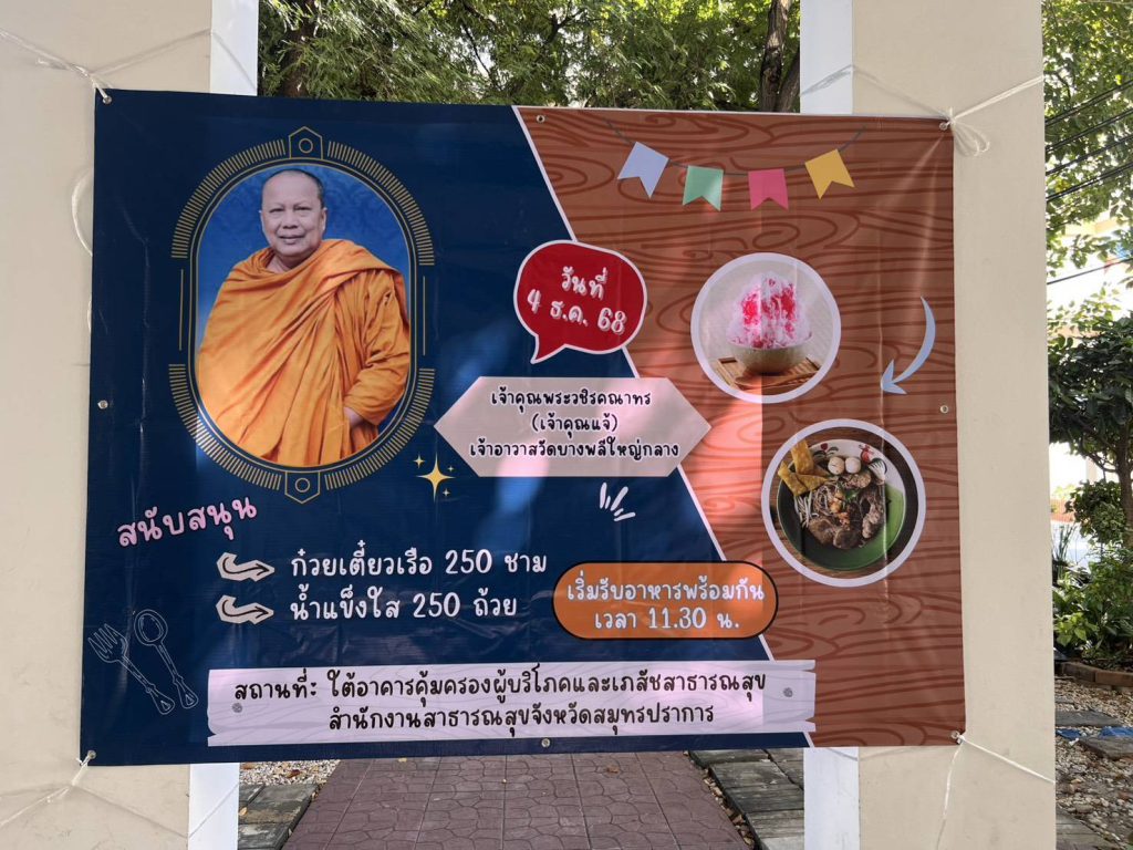 เมื่อเวลา 09.00 น. วันที่ 4 ธันวาคม 2568 ท่านเจ้าคุณแจ้ หรือ พระวชิรคณาทร เจ้าอาวาสวัดบางพลีใหญ่กลาง ได้เมตตาเป็นเจ้าภาพเลี้ยงก๋วยเตี๋ยวปทุมทองเป็นอาหารกลางวันแก่ทีมแพทย์ พยาบาล และเจ้าหน้าที่โรงพยาบาลบางพลี อำเภอบางพลี จังหวัดสมุทรปราการ รวมจำนวน 1,000 ถ้วย