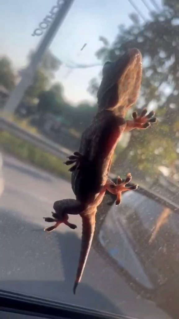 “ผมแค่ขอติดรถไปด้วย!” ตุ๊กแกโผล่เกาะกระจกรถตลอดทาง เจ้าของ งง – โผล่มาจากไหนไม่รู้