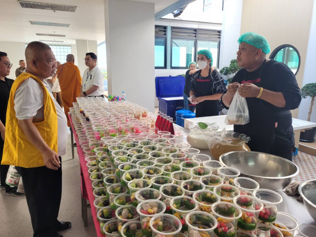 นอกจากอาหารคาวแล้ว ท่านเจ้าคุณแจ้ยังได้เมตตาเลี้ยงขนมหวานอีกจำนวน 1,000 ถ้วย เพื่อเป็นขวัญและกำลังใจแก่บุคลากรทางการแพทย์ โดยมี นายแพทย์เสาร์ ปัญจพงษ์ ผู้อำนวยการโรงพยาบาลบางพลี พร้อมทีมแพทย์ พยาบาล และเจ้าหน้าที่ ให้การต้อนรับอย่างอบอุ่น