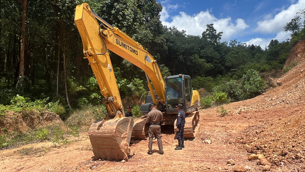 เจ้าหน้าที่ได้เดินทางเข้าไปถึงยังพิกัดที่แจ้งข้างต้นคณะเจ้าหน้าที่ได้กระจายกำลังเพื่อตรวจสอบโดยรอบตรวจพบรถแม็คโฮ จอดอยู่ในพื้นที่และมีร่องรอยการขุดตักดินในพื้นที่ด้วยรถแม็คโฮ
