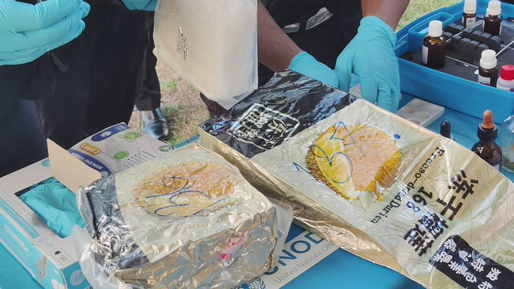 ตรวจสอบพื้นที่เกิดเหตุพบกระสอบปุ๋ยสีเหลืองกองกระจัดกระจายอยู่ริมฝั่งแม่น้ำโขง จำนวน 7 กระสอบ เมื่อทำการเปิดตรวจสอบพบเป็นยาเสพติดให้โทษประเภท 1 (ไอซ์) ทั้ง 7 กระสอบ รวมจำนวน 137 ห่อ จึงได้ทำบันทึกตรวจยึด และจะนำของกลางส่ง สภ.เมืองบึงกาฬ เพื่อดำเนินการตามกฎหมายต่อไป