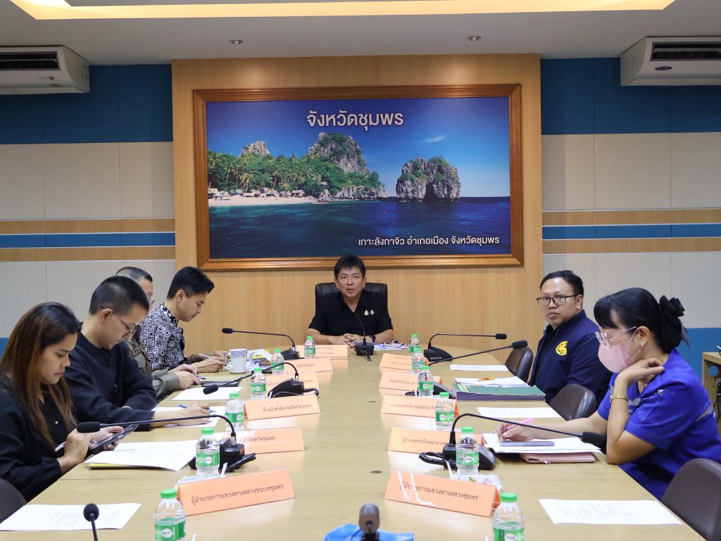 ธนากร โกศลเมธีรายงาน 0818923514 วันที่ 5 พฤศจิกายน 2568 นายเธียรชัย ชูกิตติวิบูลย์ ผู้ว่าราชการจังหวัดชุมพร เข้าร่วมประชุมคณะกรรมการศูนย์อำนวยการความปลอดภัยทางถนน (ศปถ.) ครั้งที่ 3/2568 ผ่านระบบสื่ออิเล็กทรอนิกส์ (Zoom Meeting) จากห้องประชุม 1 ปภ. อาคาร 3 ชั้น 5 กรมป้องกันและบรรเทาสาธารณภัย โดยมีคณะกรรมการศปถ.จังหวัดชุมพรเข้าร่วมประชุมพร้อมเพรียง ณ ห้องประชุมเกาะลังกาจิว ชั้น 2 ศาลากลางจังหวัดชุมพร