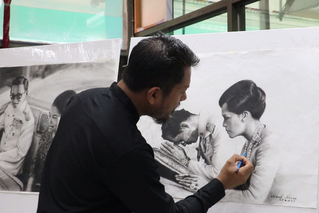 ธนากร โกศลเมธี รายงาน 081-8923514 ครูสอนศิลปะโรงเรียนศรียาภัย จังหวัดชุมพร ถ่ายทอดความรู้สึกแห่งความจงรักภักดีต่อสถาบันพระมหากษัตริย์ผ่านปลายดินสอ