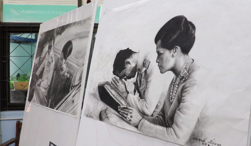 สร้างสรรค์ผลงานพระบรมสาทิสลักษณ์ “สมเด็จพระนางเจ้าสิริกิติ์ พระบรมราชินีนาถ พระบรมราชชนนีพันปีหลวง” คู่กับ “พระบาทสมเด็จพระปรมินทรมหาภูมิพลอดุลยเดชมหาราช บรมนาถบพิตร” สื่อถึงความรัก ความผูกพัน และการครองชีวิตคู่ที่ควรเป็นแบบอย่างของพสกนิกรชาวไทย