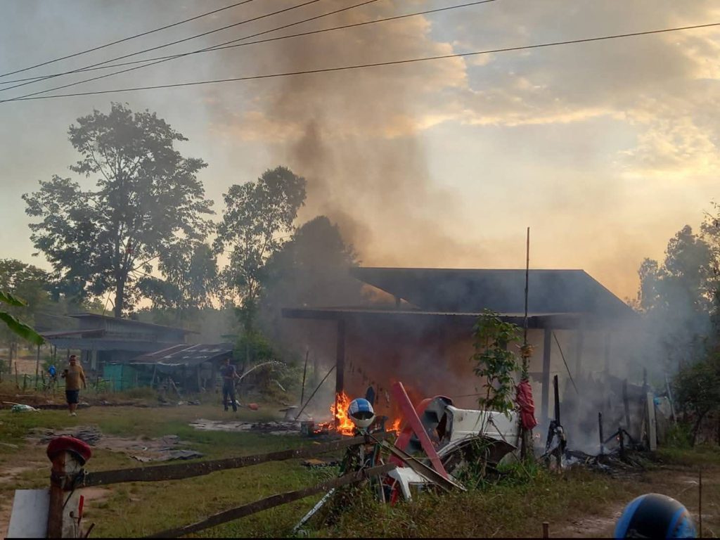 ประชดแม่ไม่ให้เงินซื้อยา! หนุ่มนิคมคำสร้อยคลุ้มคลั่งจุดไฟเผาบ้านตัวเองวอดทั้งหลัง เจ้าหน้าที่คุมตัวดำเนินคดี