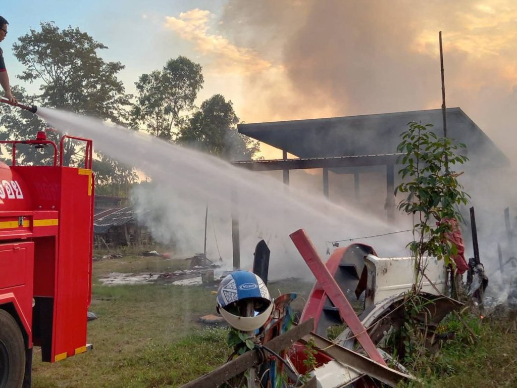 ที่เกิดเหตุพบเป็นบ้านชั้นเดียว ถูกเพลิงโหมลุกไหม้จนเสียหายทั้งหลัง เจ้าหน้าที่สามารถควบคุมเพลิงไว้ได้ในเวลาไม่นาน แต่สภาพบ้านถูกเผาวอดทั้งหลัง