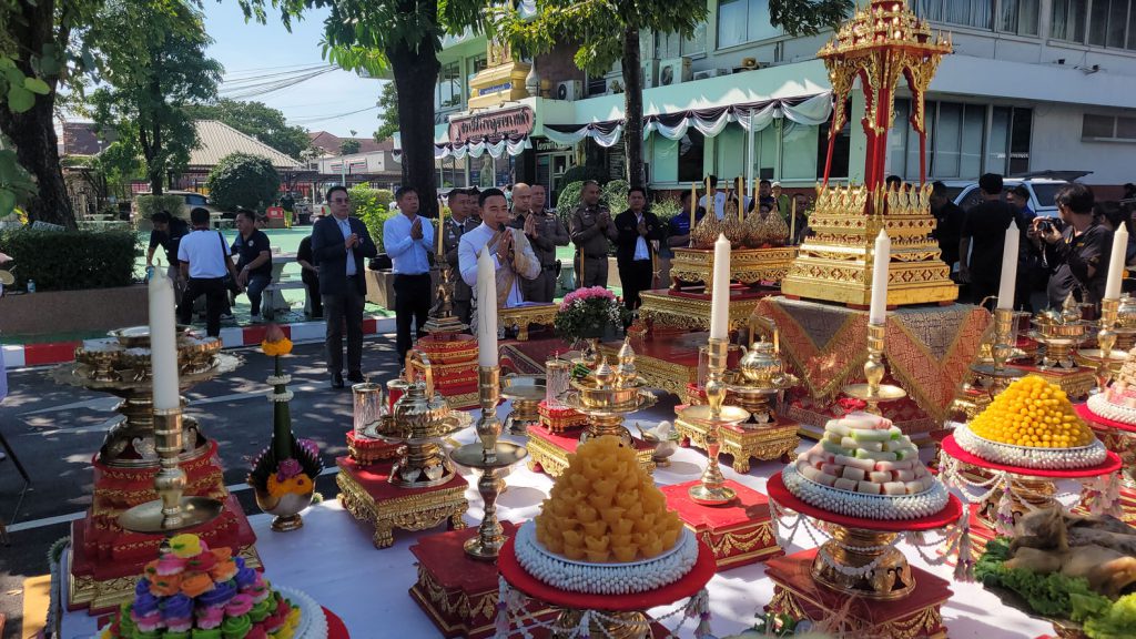 จัดพิธีบวงสรวงศาลพระพรหมและศาลตายายประจำสถานีตำรวจ โดยมี เจ้าคุณแจ้ หรือ พระวชิรคณาทร ดร. เจ้าอาวาสวัดบางพลีใหญ่กลาง เป็นประธานในพิธีบวงสรวง