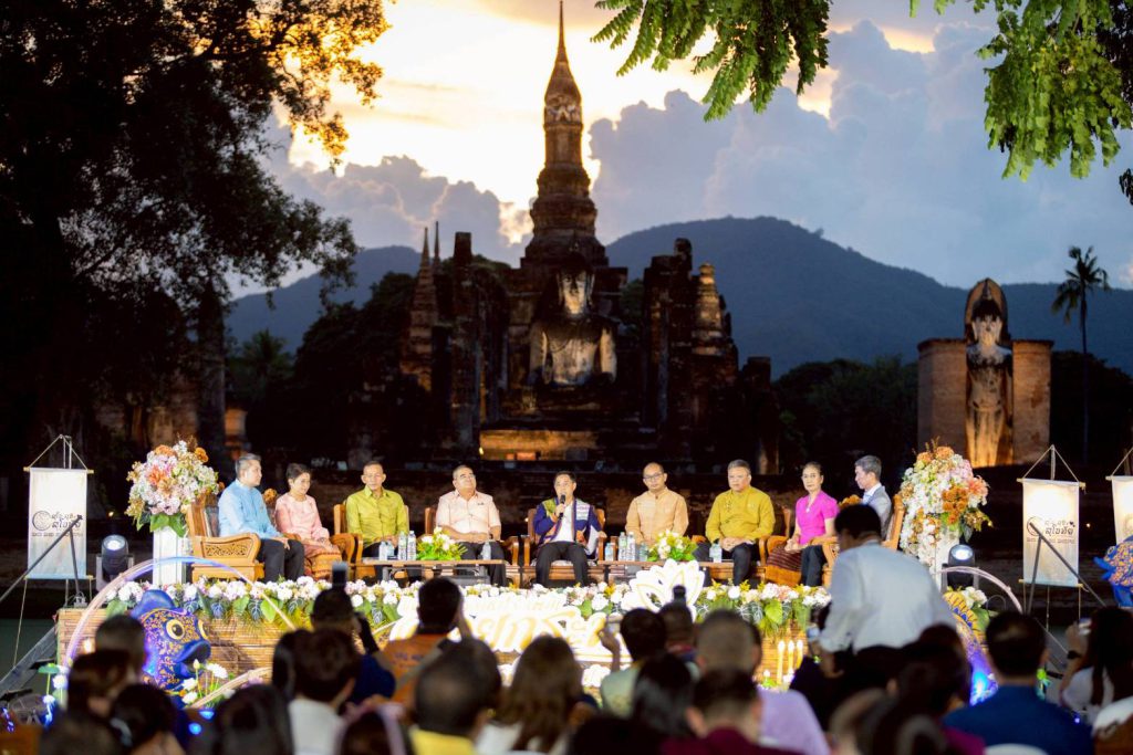 ดร.เทียนชัย ทองวินิชศิลป รองนายกองค์การบริหารส่วนจังหวัดสุโขทัย นางฐิติญา จั่นเอี่ยม วัฒนธรรมจังหวัดสุโขทัย พ.อ.นาวิน ปรีชาพณิชยกุล ผู้จัดการ อพท.สุโขทัย นายศักดิ์เกษม ตันติยวรงค์ กรรมการผู้จัดการบริษัท สุโขทัยพัฒนาเมือง จำกัด โดยหลังจากการแถลงข่าวได้แสดงการจุดพลุ บริเวณหลังวัดมหาธาตุอย่างสวยงามสร้างประทับใจแก่ผู้ร่วมงาน