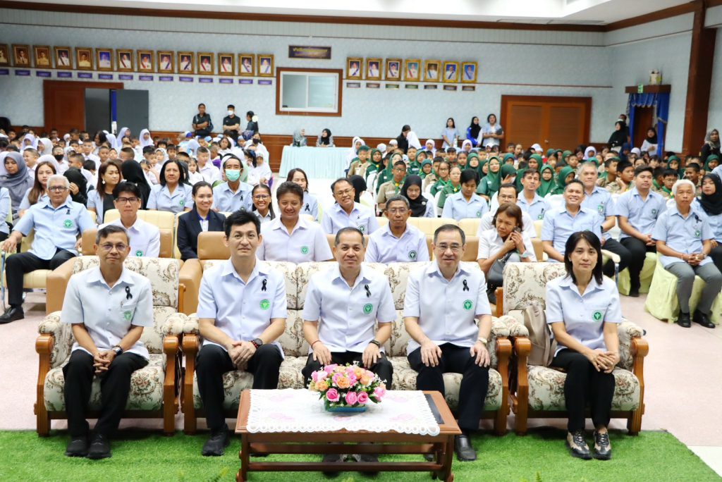 สาธารณสุขจังหวัดนราธิวาส, นพ.พรประสิทธิ จันทระ ผู้อำนวยการโรงพยาบาลนราธิวาสราชนครินทร์, คณะผู้บริหาร สาธารณสุขอำเภอ ผอ.โรงพยาบาลชุมชน และบุคลากรสาธารณสุข คณะครู นักเรียน บุคลกรทางการศึกษา เข้าร่วม สำหรับกิจกรรม “การส่งมอบแว่นสายตาแก่นักเรียน” ซึ่งเป็นผลลัพธ์จากการดำเนินงานของ โครงการเด็กไทยสายตาดี มอบแว่นเป็นของขวัญวันเด็ก 480 อัน