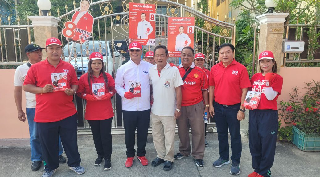 ดร.ยงยุทธ สุวรรณบุตร ผู้สมัคร สส.สมุทรปราการ เขต 2 พรรคเพื่อไทย ลงพื้นที่เคาะประตูบ้านย่านบางปู รับการต้อนรับอบอุ่นจากชาวบ้าน เด็ก ๆ แห่ช่วยเชียร์ ชูนโยบายแก้หนี้ เพิ่มรายได้ ยกระดับคุณภาพชีวิตทุกกลุ่ม