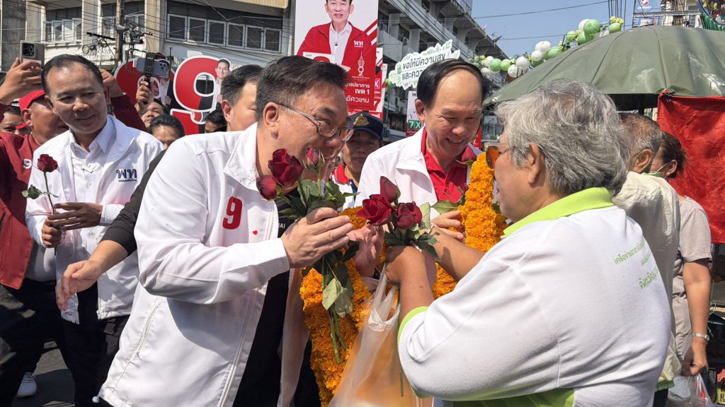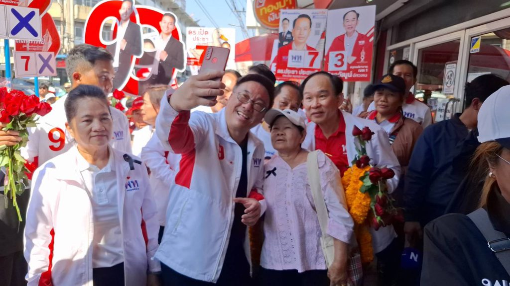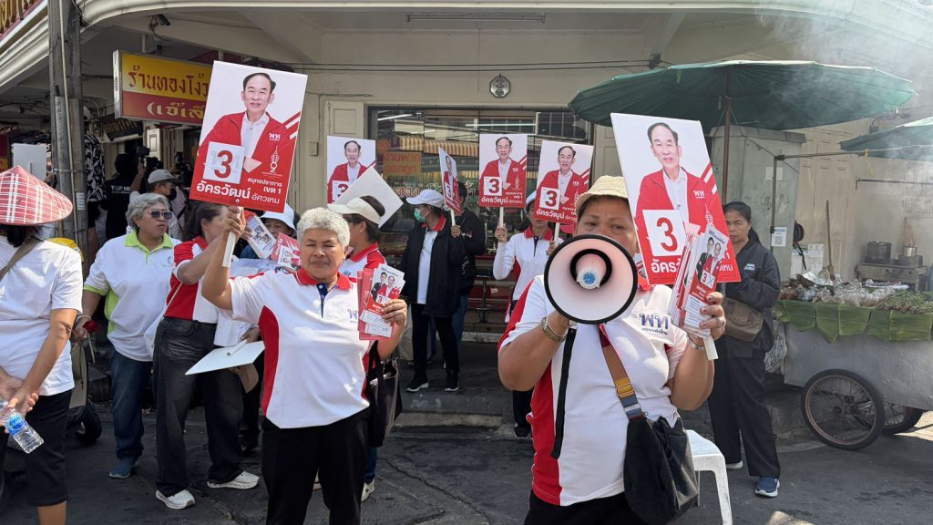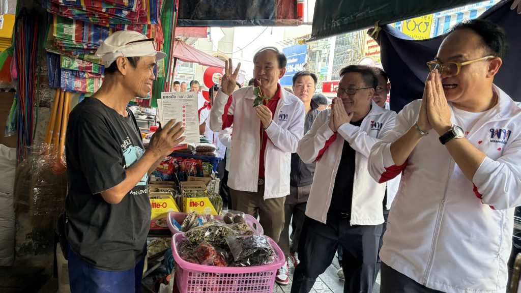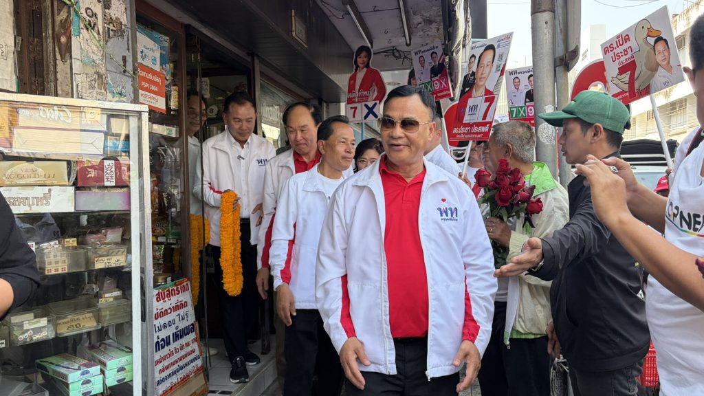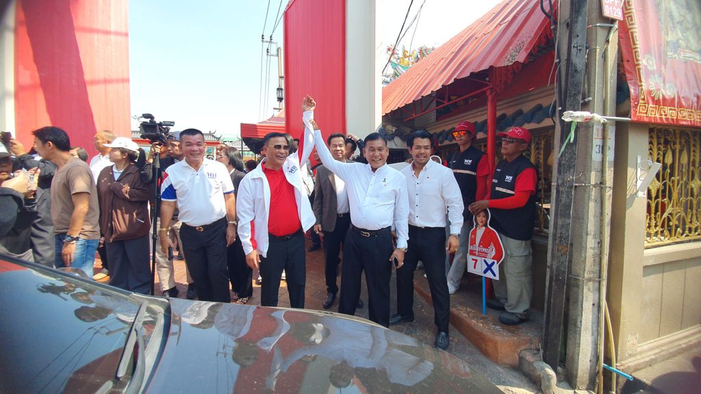 ก่อนลงพื้นที่ภายในตลาดปากน้ำ ช่วยนายอัครวัฒน์ อัศวเหม หาเสียง แจกแผ่นพลับชูนโยบายหลัก ปัญหาคนปากน้ำ สู่นโยบายระดับชาติ ภายใต้สโลแกน “เพื่อไทยทำได้ ทำให้ไทยยิ่งใหญ่ เลือกพรรคเพื่อไทย ทั้งคนทั้งพรรค