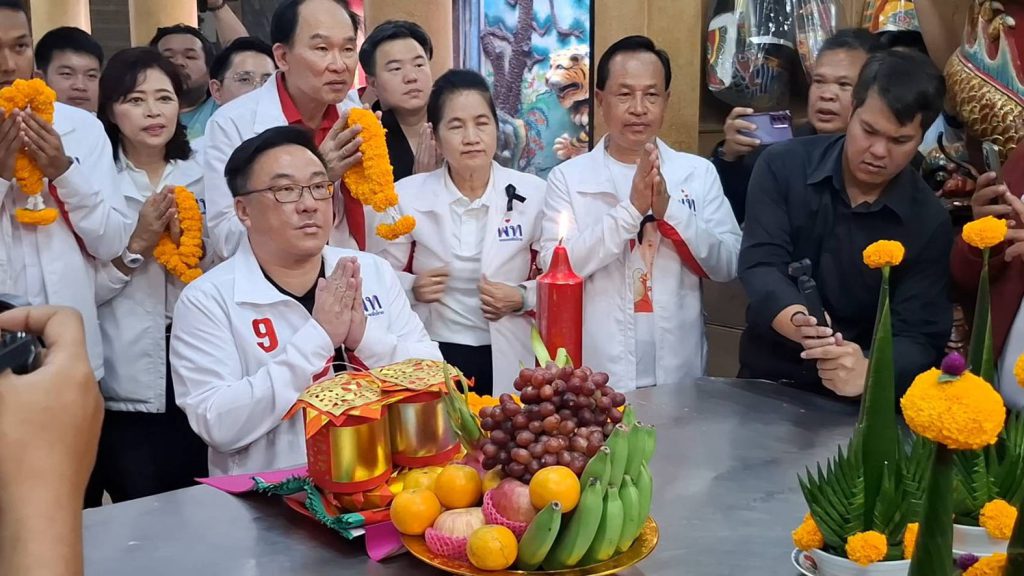และแบบบัญชีรายชื่อ ประกอบไปด้วย นายสงคราม กิจเลิศไพโรจน์ นายต่อศักดิ์ อัศวเหม นายธนประเสริฐ จันทรักษรังษี นายจาตุรนต์ นกขมิ้น ร่วมลงพื้นที่ อำเภอเมือง เขต 1 สมุทรปราการ และผู้ช่วยหาเสียง เข้าสักการะศาลเจ้าพ่อหลังเมือง สิ่งสักสิทธิ์คู้บ้านคู้เมืองของชาวปากน้ำ