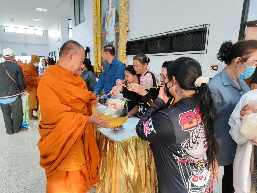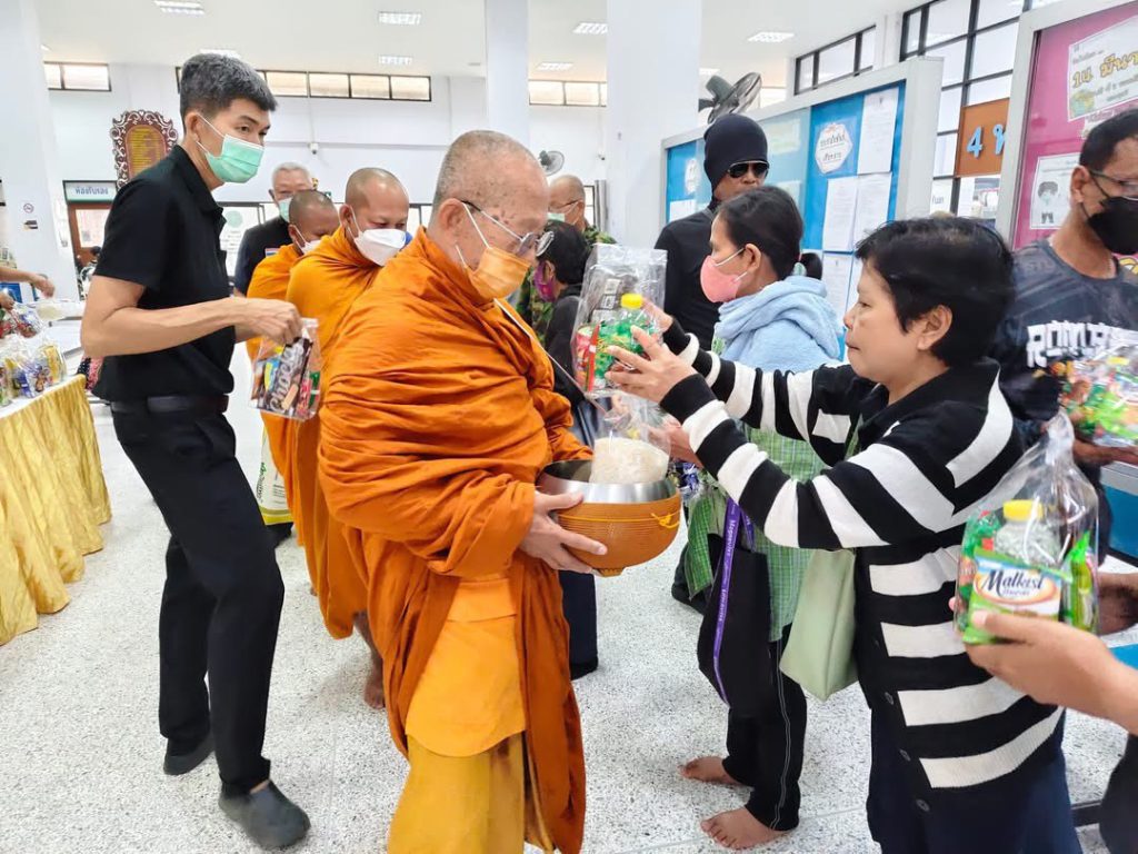 ในการนี้ ได้รับความเมตตาจาก ท่านพระครูเกษมถาวรคุณ (ถาวร) สุนทรวิภาค ท่านเจ้าอาวาส พร้อมด้วยพระภิกษุสงฆ์จากวัดบางเลน จ.นครปฐม มารับบิณฑบาตจากเจ้าหน้าที่และประชาชนอย่างพร้อมเพรียงกัน