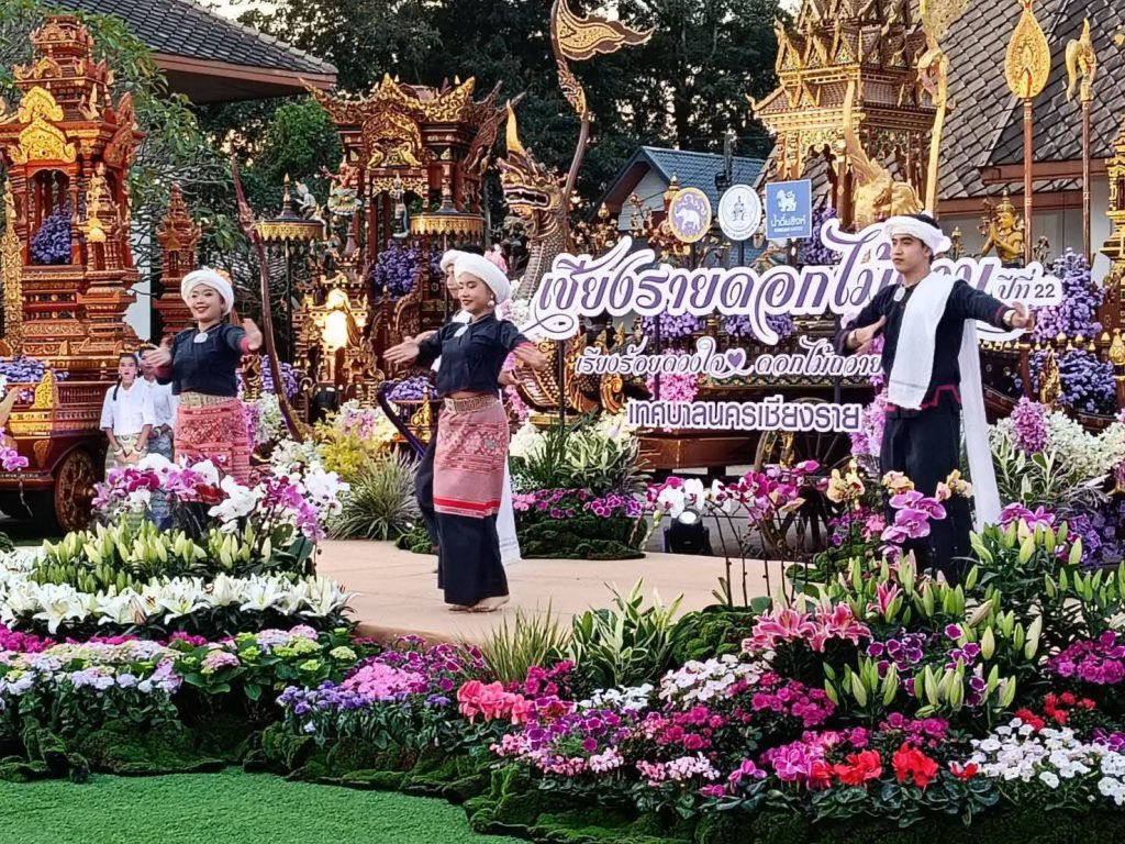 ของไม้ดอกเมืองหนาวนานาพันธุ์ อาทิ ดอกลิลลี่ ดอกทิวลิป และกล้วยไม้หลากสีสันนับล้านดอก ที่เนรมิตและสร้างสรรค์ประติมากรรมดอกไม้สุดตระการตา สะท้อนอัตลักษณ์ “เชียงราย เมืองแห่งศิลปะ” ได้อย่างงดงาม โดยปีนี้ยังถ่ายทอดแนวคิดอัน