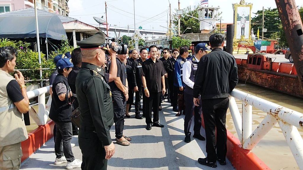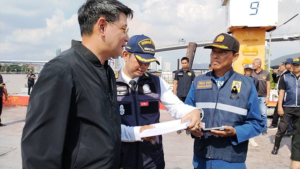 ท่าเรือข้ามฝากและแพขนานยนต์ ที่ให้บริการประชาชนจากฝั่งอำเภอพระประแดงไปยังฝั่งถนนปู่เจ้าสมิงพราย ซึ่งในช่วงนี้มีระดับน้ำในแม่น้ำเจ้าพระยาสูงขึ้นจากอิทธิพลของน้ำทะเลหนุน ประกอบกับมวลน้ำเหนือที่ไหลลงมาสมทบและฝนตกในพื้นที่คณะผู้บริหารจังหวัดได้ร่วมลงเรือสำรวจแนวแม่น้ำ พร้อมกำชับหน่วยงานที่เกี่ยวข้องให้เตรียมพร้อมรับมือสถานการณ์น้ำ โดย ผู้ว่าราชการจังหวัดสมุทรปราการ