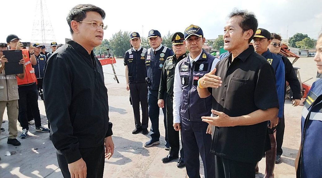 นายฉัตรชัย เวชสาร ผู้อำนวยการเจ้าท่าจังหวัดสมุทรปราการ / พ.อ.ธนิวรรธณ์ คำกรุนันทกานต์ รองผู้อำนวยการ กอ.รมน.จังหวัดสมุทรปราการ / และ พ.ต.อ.พยงค์ เอี่ยมสกุล ผกก.4 บก.รน.ตำรวจน้ำจังหวัดสมุทรปราการ ร่วมลงพื้นที่ตรวจสอบสถานการณ์น้ำบริเวณหน้าที่ว่าการอำเภอพระประแดง จังหวัดสมุทรปราการ พื้นที่ดังกล่าวเป็นจุดสำคัญของ