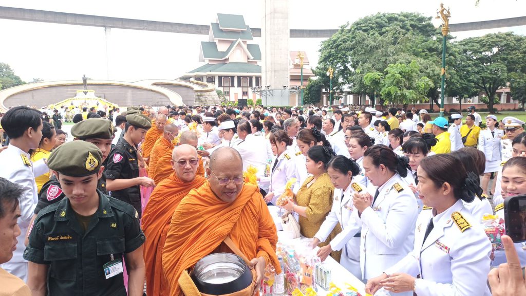 เมื่อเวลา 07.30 น. วันที่ 13 ตุลาคม 2568 ซึ่งตรงกับ “วันนวมินทรมหาราช” ณ ลานพระบรมรูปทรงงาน สวนสุขภาพลัดโพธิ์ อำเภอพระประแดง จังหวัดสมุทรปราการ นายสยาม ศิริมงคล ผู้ว่าราชการจังหวัดสมุทรปราการ เป็นประธานในพิธีทำบุญตักบาตร ถวายพระราชกุศล พระสงฆ์และสามเณร จำนวน 89 รูป พิธีวางพวงมาลา และถวายความเคารพเบื้องหน้าพระบรมฉายาลักษณ์ พระบาทสมเด็จพระบรมชนกาธิเบศร มหาภูมิพลอดุลยเดชมหาราช บรมนาถบพิตร