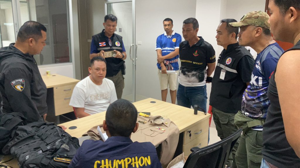 เหตุจับกุมเกิดขึ้นเมื่อวันที่ 14 พฤศจิกายน 2568 เจ้าหน้าที่เข้าควบคุมตัว นายจิระศักดิ์ หรือหนุ่ม (สงวนนามสกุล) อายุ 42 ปี ภายในศาลาวัดท่ายางกลาง (วัดพิชัยยาราม) ต.ท่ายาง อ.เมือง จ.ชุมพร พร้อมของกลางธนบัตรล่อซื้อ 15,000 บาท, โทรศัพท์มือถือ และเอกสารส่วนตัวของผู้เสียหายหลายรายการ นอกจากนี้ยังพบชุดสีกากีติดป้ายชื่อปลอม อ้างตำแหน่ง “หัวหน้าภาคเฉพาะกิจในส่วนพระราชวัง” เพื่อเสริมความน่าเชื่อถือในการหลอกลวง