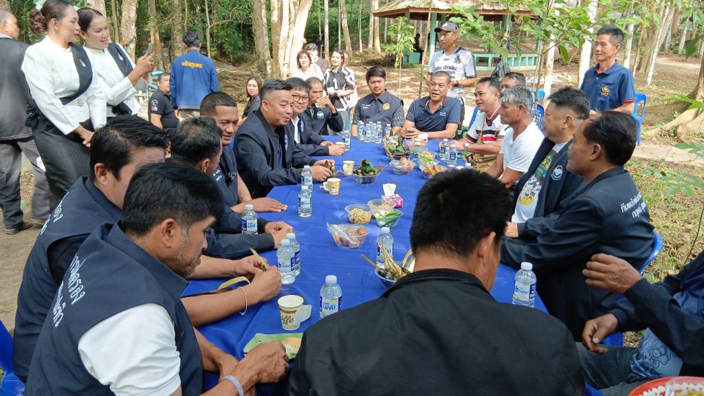 พบปะกับผู้นำท้องที่นำโดย นายศราวุธ ทองเหลือ กำนันตำบลดอนยาง ผู้ใหญ่บ้าน ผู้ช่วย แพทย์ สารวัตร ผู้นำท้องถิ่น นำโดย นายกฤษณ์ สุขแก้ว นายก อบต.ดอนยาง สมาชิกสภา อบต.นายณพล เอื้องเรืองโรจน์ รองนายกเทศมนตรีตำบลมาบอำมฤต สมาชิกสภาฯ กลุ่มพลังสตรี อำเภอเมืองรอบนอก ตำบลสะพลี ทรัพย์อนันต์ ปากคลอง ดอนยาง ชุมโค และประชาชนในพื้นที่