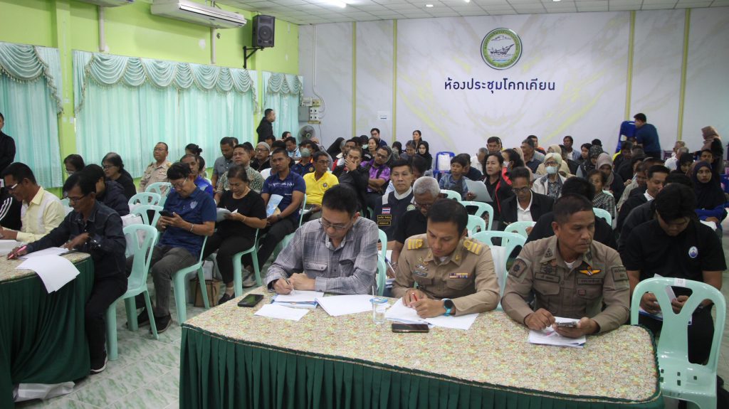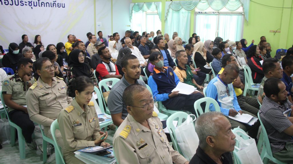 พื้นที่ชายฝั่งทะเลตำบลโคกเคียน อำเภอเมืองนราธิวาส ที่ห้องประชุมโคกเคียน อบต.โคกเคียน อำเภอเมืองนราธิวาส ซึ่งมีผู้แทนหน่วยงานราชการ ระดับจังหวัด/อำเภอ ผู้แทน อปท. ผู้นำท้องที่ และประชาชนที่เกี่ยวข้อง กว่า 120 คน เข้าร่วม ขณะนี้เดียวกันจะมีผู้เข้าประชุมผ่านสื่ออิเล็กทรอนิกส์ (Zoom)