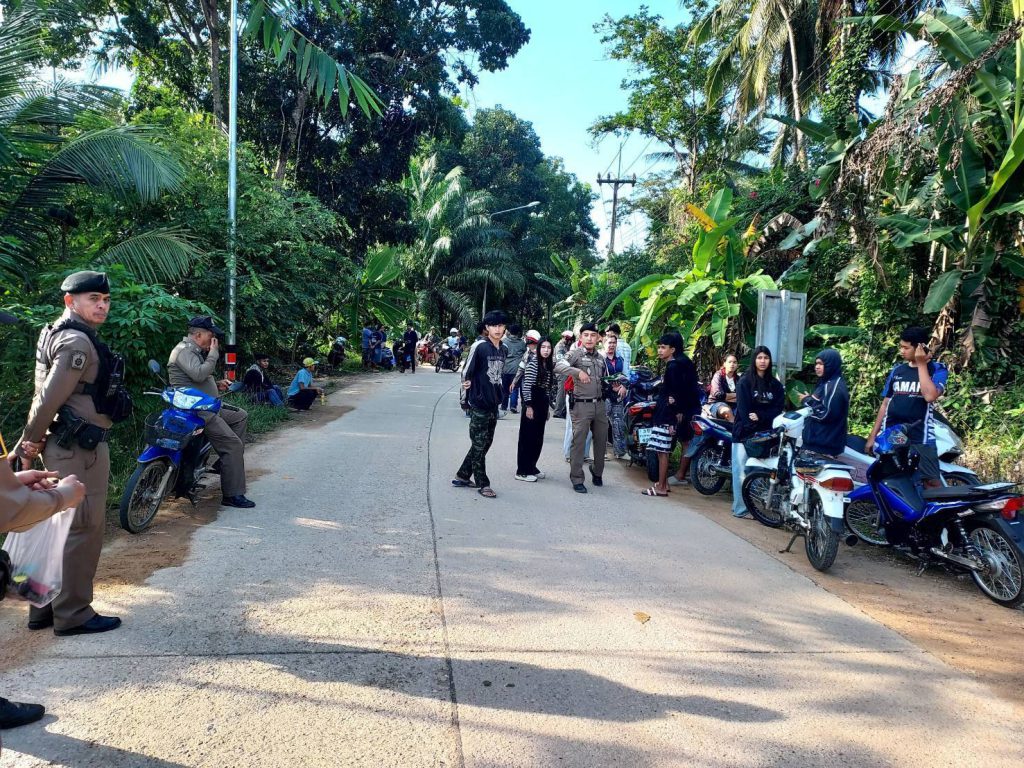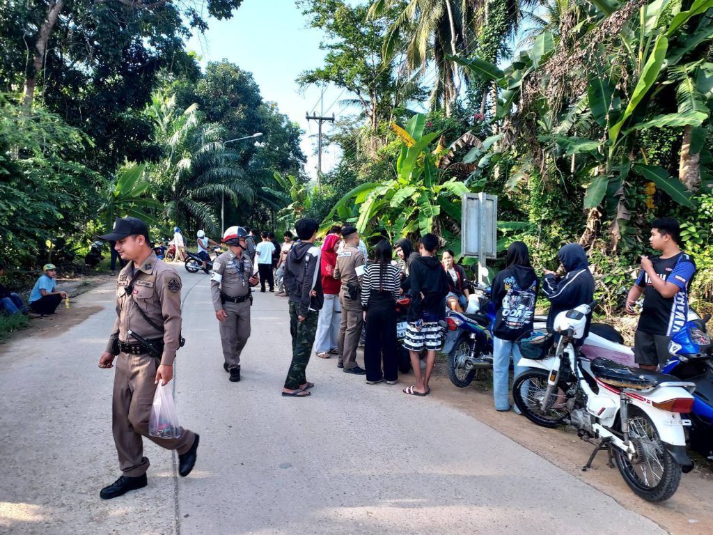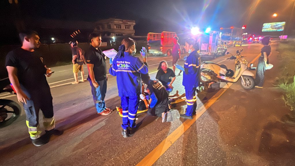 ที่เกิดเหตุพบชายผู้บาดเจ็บนอนอยู่กลางถนน อาการสาหัส เจ้าหน้าที่เร่งปฐมพยาบาลก่อนนำส่งโรงพยาบาล ใกล้กันพบรถจักรยานยนต์ยามาฮ่าสีดำ–แดง ทะเบียน กรษ 349 ชุมพร ตกอยู่ในร่องกลางถนน ห่างจากจุดพบผู้บาดเจ็บกว่า 5 เมตรห่างออกไป 200 เมตร พบรถกระบะ ยี่ห้อโตโยต้า รุ่นรั้ว สีขาว–ดำ ทะเบียน บท 2187 ยะลา บรรทุกผักเต็มคันจอดอยู่ริมถนน ใต้ท้องรถพบร่างหญิ่งอีกหนึ่งราย เจ้าหน้าที่กู้ภัยนำร่างออกมา พบว่า เสียชีวิตแล้วคาที่ ผู้บาดเจ็บและเสียชีวิตยังไม่ทราบชื่อ