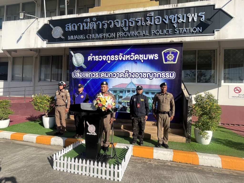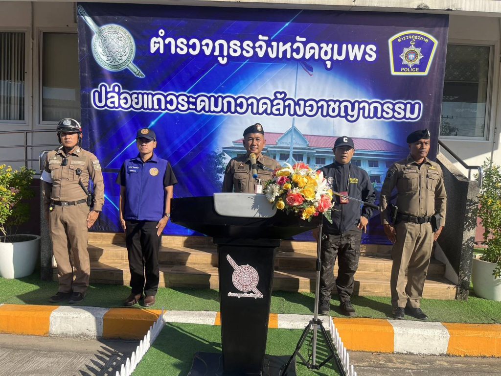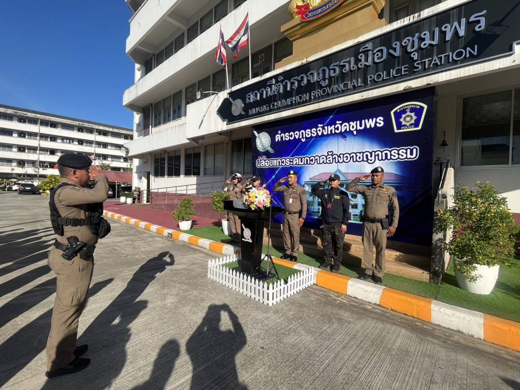 ธนากร โกศลเมธีรายงาน 0818923514 วันที่ 17 ธันวาคม 2568 เวลา 16.00 น. พ.ต.อ.ปัญญา ท้วมศรี ผู้กำกับการสถานีตำรวจภูธรเมืองชุมพร เป็นประธานในพิธีปล่อยแถวระดมกวาดล้างอาชญากรรมอย่างเข้มข้น ก่อนช่วงเทศกาลคริสต์มาสและวันหยุดยาวเทศกาลปีใหม่ 2569 โดยกำหนดปฏิบัติการต่อเนื่องในห้วงวันที่ 17 – 25 ธันวาคม 2568 รวม 9 วันเต็ม เพื่อสร้างความอุ่นใจและความปลอดภัยให้ประชาชนในพื้นที่