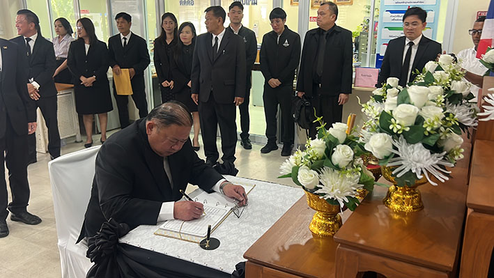 ในการนี้มี พ.ต.ท.สุรศักดิ์ พนัสนาชี รอง ผกก.ป.สภ.เมืองชุมพร, พ.ต.ท.สกฤชญ สุขนิตย์ รอง ผกก.สส.สภ.เมืองชุมพร, พ.ต.ท.ปฏินันท์ จันทร์หนองไทร สว.จร.สภ.เมืองชุมพร และ พ.ต.ท.ประคอง แก้วประสม สวป.(ชส.)สภ.เมืองชุมพร พร้อมด้วยฝ่ายปกครอง เจ้าหน้าที่ อส. และ อส.ตร.สภ.เมืองชุมพร เข้าร่วมพิธี ณ บริเวณหน้าที่ทำการ สภ.เมืองชุมพร