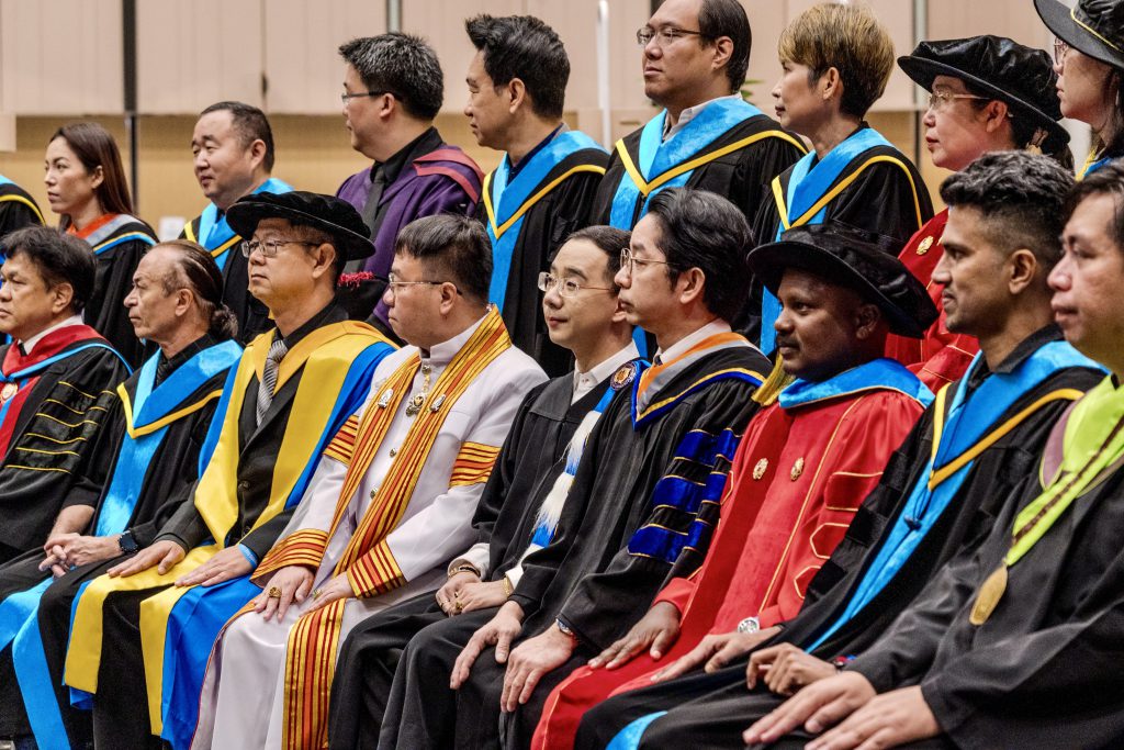 พิธีการสำคัญเริ่มต้นด้วยการถวายความอาลัยแด่สมเด็จพระนางเจ้าสิริกิติ์ พระบรมราชินีนาถ พระบรมราชชนนีพันปีหลวง โดย ดร. อภิเทพ แซ่โค้ว (รักษาการอธิการบดีมหาวิทยาลัย) ได้นำคณะทูตประจำประเทศไทย คณะกรรมการสภามหาวิทยาลัย ผู้ทรงคุณวุฒิ คณาจารย์ ศิษย์เก่า และบัณฑิตทุกระดับชั้นร่วมแสดงความอาลัย พร้อมกล่าวน้อมรำลึกถึงพระราชกรณียกิจด้านการส่งเสริมการศึกษา การพัฒนาคุณภาพชีวิต และการสร้างความร่วมมือกับนานาประเทศ ซึ่งเป็นแรงบันดาลใจสำคัญต่อการขับเคลื่อนพันธกิจของมหาวิทยาลัยในการมุ่งมั่นพัฒนาการศึกษาและสร้างความร่วมมือระดับสากล
