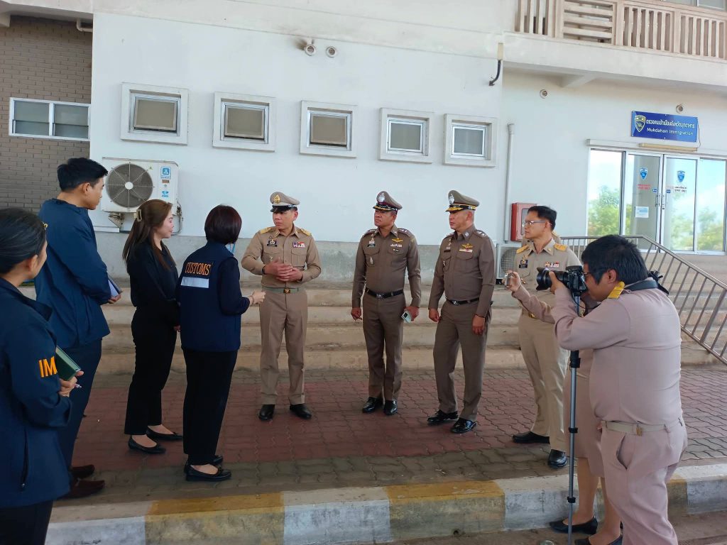 ในจังหวัดมุกดาหาร และนางกนกวรรณ สุขศิริ กนกวรรณ สุขศิริ นายด่านศุลกากรมุกดาหาร ร่วมตรวจสอบรถบรรทุกขนส่งน้ำมันเชื้อเพลิงที่เตรียมข้ามสะพานมิตรภาพไทย–ลาว แห่งที่ 2 จากจังหวัดมุกดาหารไปแขวงสะหวันนะเขต สปป.ลาว ณ บริเวณด่านพรมแดนมุกดาหาร