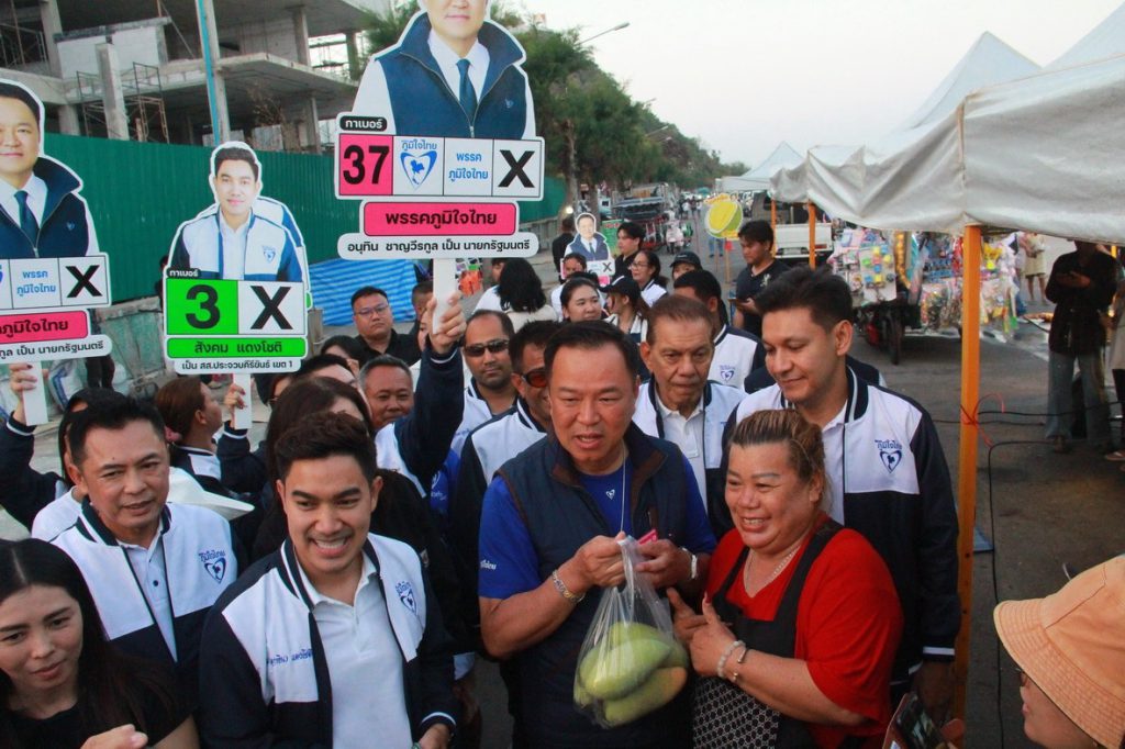 ในเขตเทศบาลเมืองประจวบคีรีขันธ์ เพื่อช่วยหาเสียงให้กับผู้สมัคร สส. จังหวัดประจวบฯ เขต 1 พรรคภูมิใจไทย นายสังคม (ลูกหิน) แดงโชติ อดีต สส.ประจวบฯในเขตนี้ ภายหลังเดินทางกลับจากไปช่วยผู้สมัคร สส. จ.ชุมพร หาเสียงตั้งแต่ช่วงเช้า และเดินทางด้วยรถยนต์ต่อมายังถนนคนเดินประจวบฯ ท่ามกลางบรรยากาศกองเชียร์ที่มาต้อนรับอย่างอบอุ่น