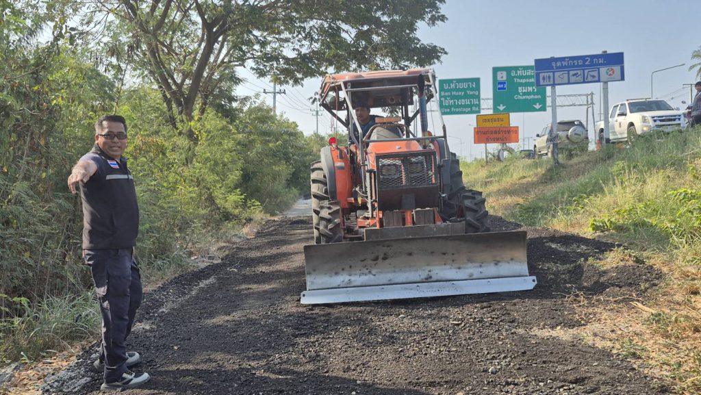 ตนเองจึงได้ประสานไปทาง กรมทางหลวง และทาง อบต.ห้วยยาง โดยให้ พ.อ.อ.ฉัตรชัย สวียานนท์ หัวหน้างานป้องกันและบรรเทาสาธารณภัย อบต.ห้วยยาง ประสานรถบรรทุก 6 ล้อ และรถไถดำเนินการขนหินคลุกจำนวนกว่า 25 คิว มาใส่เป็นทางและรถไถดันเกลี่ยเพื่อใช้ชาวบ้านใช้สัญจรได้ตามปกติ ซึ่งจุดกลับรถดังกล่าวเมื่อซ่อมเสร็จ รถบรรทุก 6 ล้อเล็ก รถรั้ว รถกระบะ รถเก๋ง และ จยย. สามารถใช้ได้หมด และยังช่วยลดอุบัติเหตุจุดกลับรถยูเทิร์นสาย 2 ได้อีกด้วย
