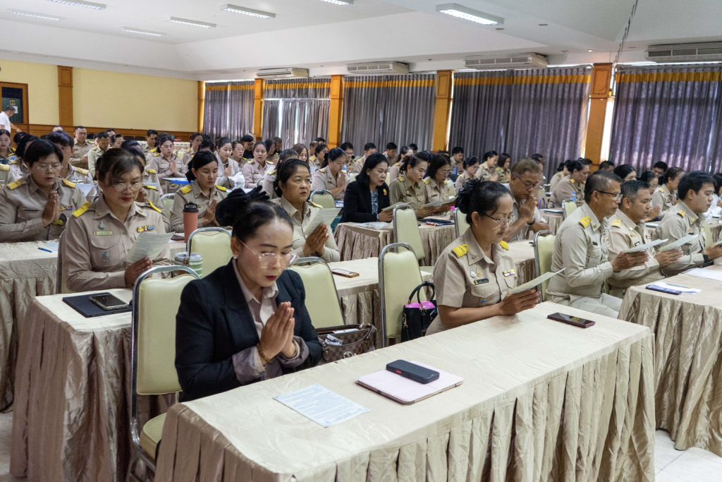 โดยเน้นการปลูกฝังคุณค่าทางจิตใจ ค่านิยมที่ถูกต้อง และการประพฤติปฏิบัติที่เหมาะสมกับสถานะของความเป็นข้าราชการที่ดี ในการนี้ได้รับเกียรติจาก พระครูปลัดสิทธิวัฒน์ (หลวงพ่อน้ำฝน) เจ้าอาวาสวัดไผ่ล้อม พระอารามหลวง เป็นวิทยากรผู้บรรยายพิเศษ การอบรมในครั้งนี้มีผู้บริหารสถานศึกษาในสังกัด เข้าร่วมการอบรมฯ จำนวน 106 คน ณ ห้องประชุมทวารวดีศรีพระประโทณ โรงเรียนวัดพระประโทณเจดีย์ อำเภอเมืองนครปฐม จังหวัดนครปฐม