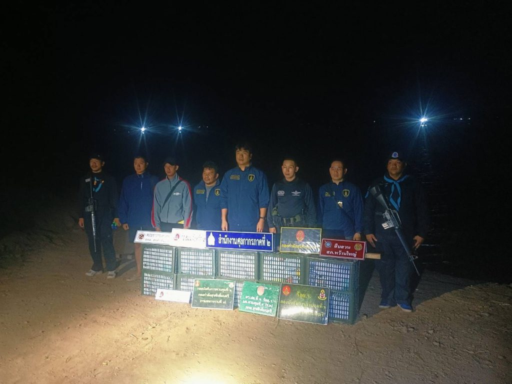 กระทั่งเวลา 22.20 น. เจ้าหน้าที่พบกลุ่มบุคคลราว 7–8 คน กำลังขนลังพลาสติกสีดำจากเรือเหล็กติดเครื่องยนต์ริมแม่น้ำโขง เมื่อเจ้าหน้าที่แสดงตัวเข้าตรวจค้น กลุ่มคนดังกล่าวพากันวิ่งหลบหนีเข้าป่าริมโขง พร้อมขับเรือกลับไปยังฝั่ง สปป.ลาว