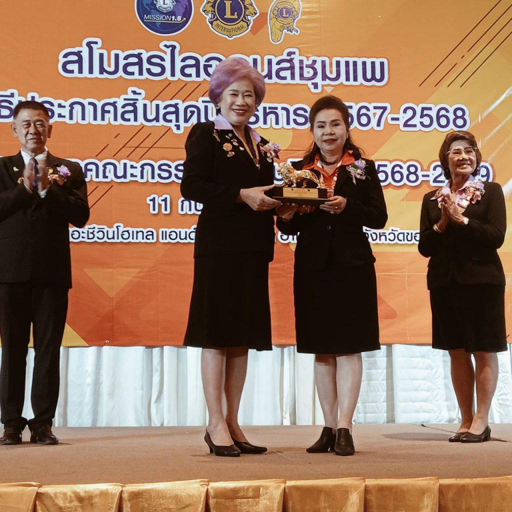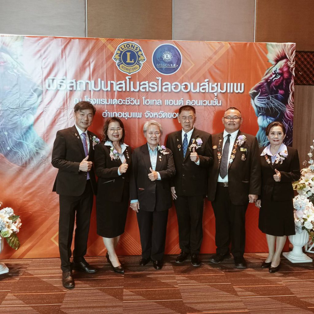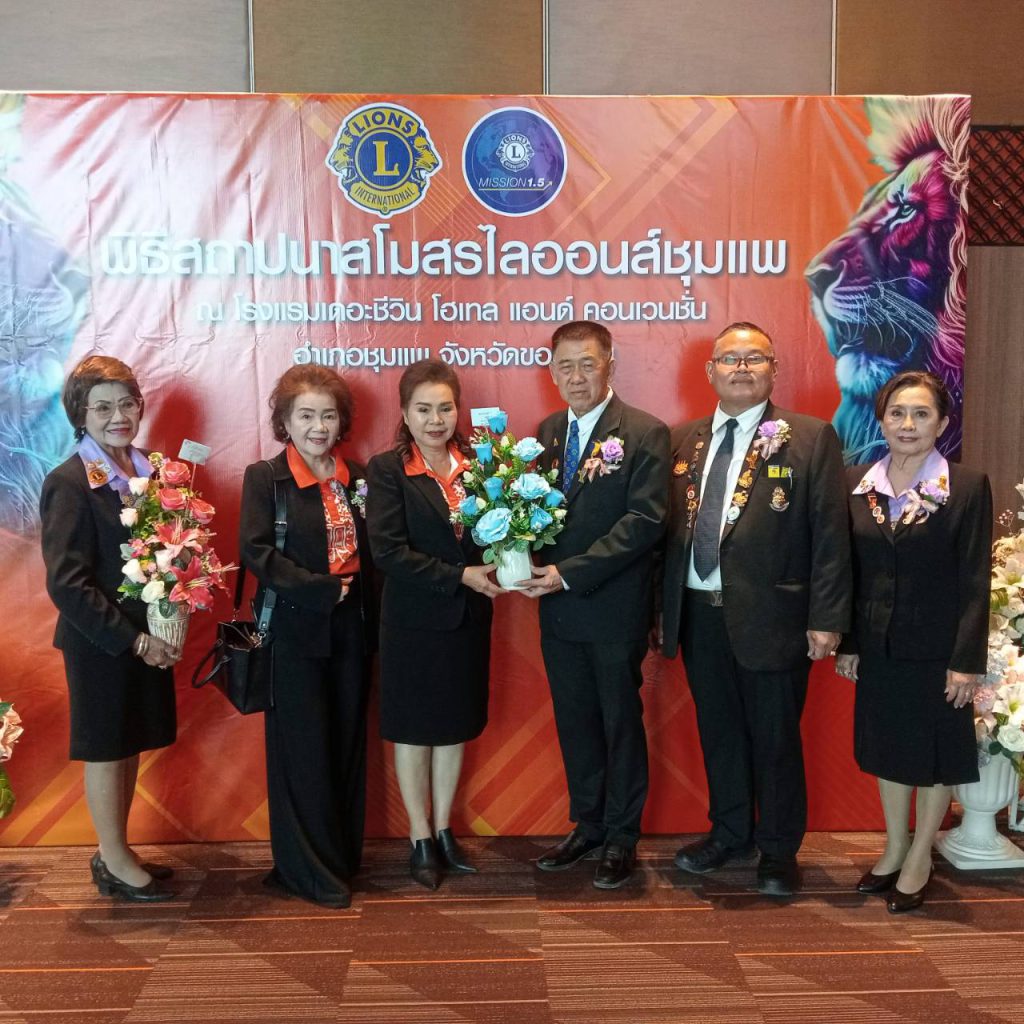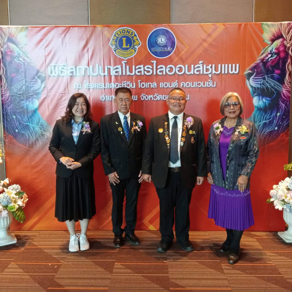ไลออน เกษสุรีย์ ชีพธรรมคุณ ผู้ว่าการไลออนส์สากลภาค 310 เพิ่งผ่านพ้น ปี2567-2568 กล่าวแสดงความยินดีและชื่นชมกับ ไลออน อัมรินทร์ อารัมภ์วิโรจน์ นายกสโมสรไลออนส์ชุมแพ