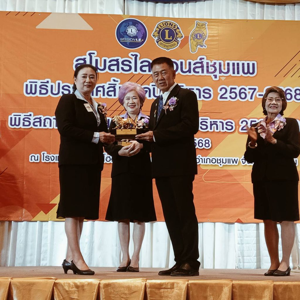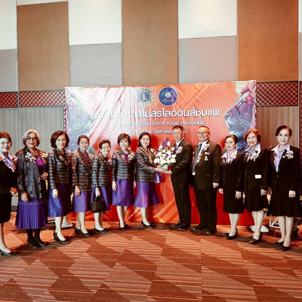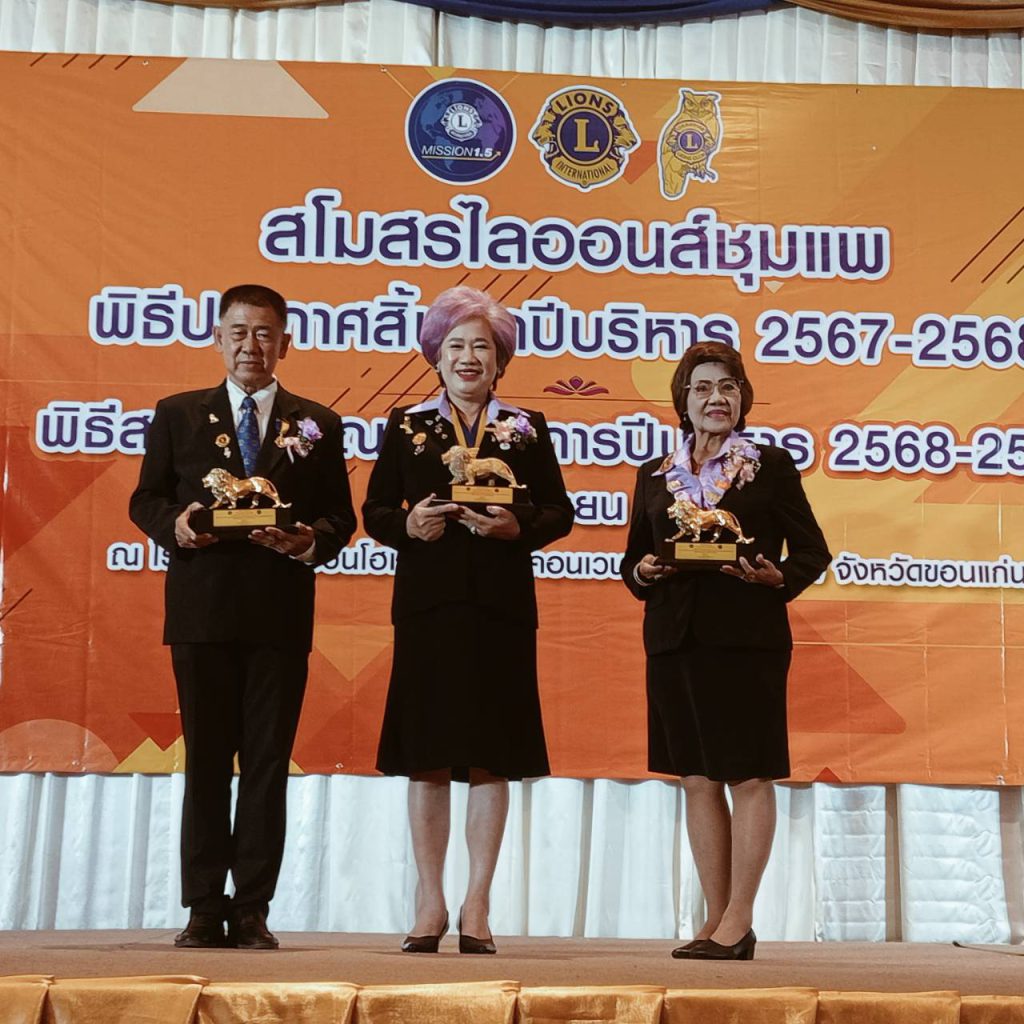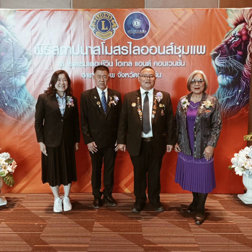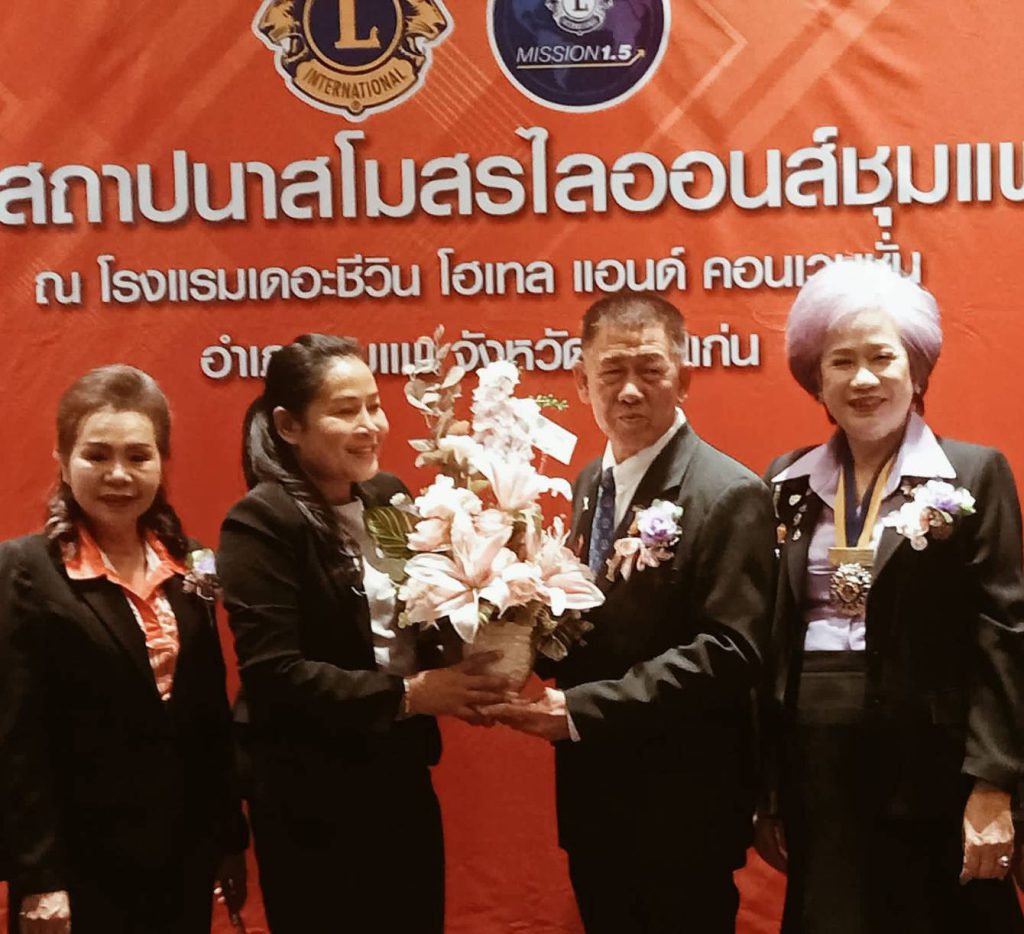 ไลออน เกษสุรีย์ ชีพธรรมคุณ ผู้ว่าการไลออนส์สากลภาค 310 เพิ่งผ่านพ้น ปี2567-2568 กล่าวแสดงความยินดีและชื่นชมกับ ไลออน อัมรินทร์ อารัมภ์วิโรจน์ นายกสโมสรไลออนส์ชุมแพ