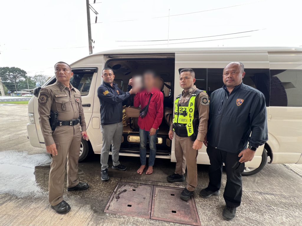 ได้ร่วมกันจับกุมตัว บริเวณถนนเพชรเกษมขาล่องใต้ กม.458 ถึง กม.459 ม.2 ต ทรัพย์อนันต์ อ.ท่าแซะ จ.ชุมพร