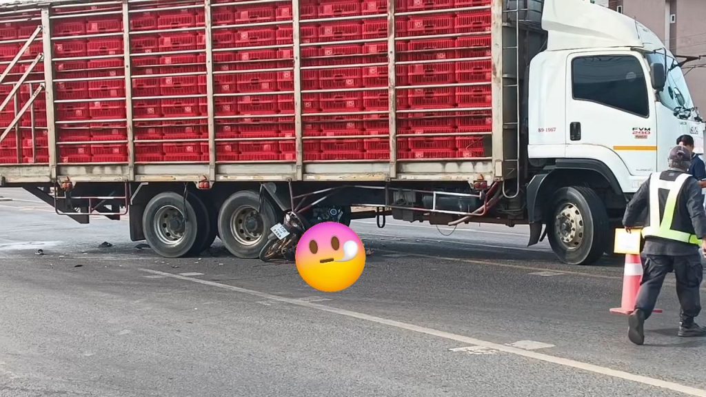 หนุ่มโรงงานขับมอไซค์ชนสิบล้อดับติดใต้ท้องรถหนุ่มโรงงานขับมอเตอร์ไซด์ด้วยความเร็วสูงชนรถบรรทุกไก่ตัดหน้ากระทันหัน.เบรคไม่ทันชนอย่างแรงร่างกระเด็นอัดก็อปปี้อยู่ใต้ท้องรถตายคาที่ จุดเกิดเหตุ บริเวณ ถนน 224.หน้าโรงงานคาร์กิล อำเภอโชคชัย จ.นครราชสีมา