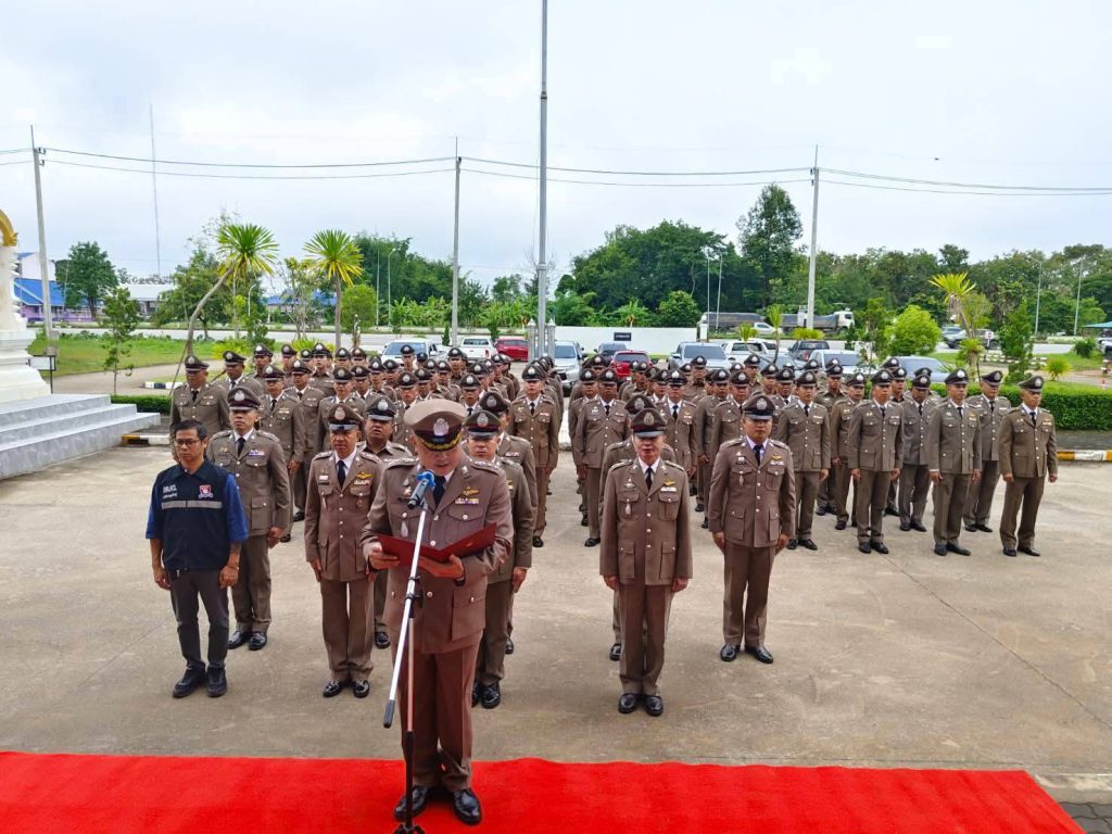 🗣️ กล่าวอุดมคติตำรวจ คำปฏิญาณตน และอ่านสาส์นจากผู้บัญชาการตำรวจแห่งชาติ เพื่อแสดงออกถึงความจงรักภักดี ความเสียสละ และความภาคภูมิใจในการเป็นตำรวจของประชาชน