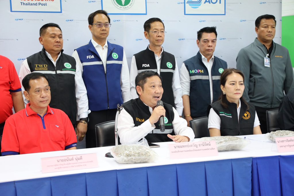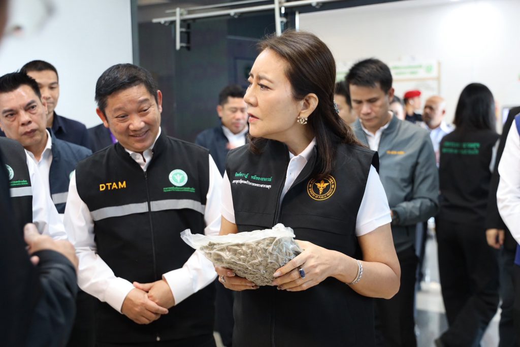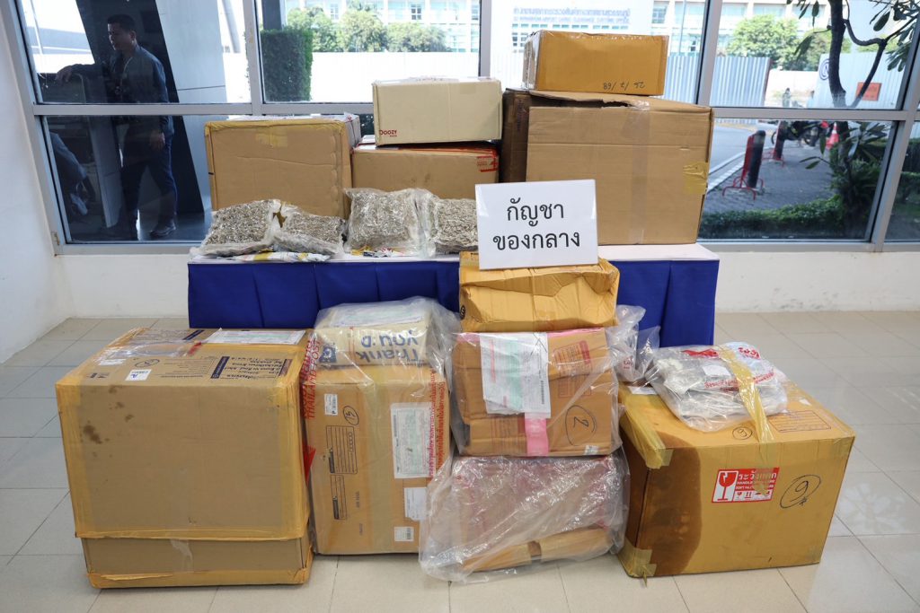 วันที่ 21 ตุลาคม 2568 เวลา 15.30 น. ที่สนามบินสุวรรณภูมิ กรมการแพทย์แผนไทยและการแพทย์ทางเลือก ร่วมมือ บริษัท ไปรษณีย์ไทย จำกัด ตรวจยึด พัสดุต้องสงสัย คาดว่าจะเป็นกัญชาลักลอบส่งออก กว่า 1,500 ชิ้น ผ่านระบบขนส่งพัสดุหลังพบพัสดุต้องสงสัยตกค้างจำนวนมาก