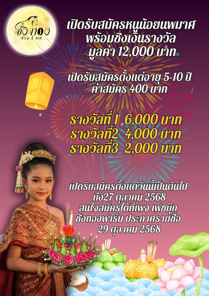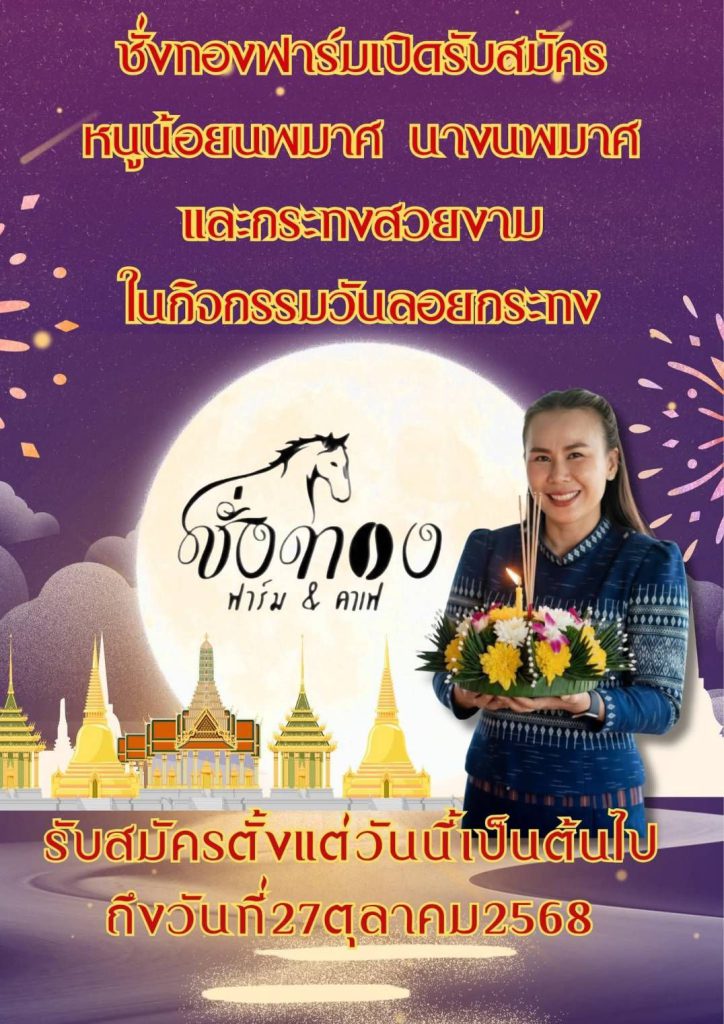 ในวันเสาร์ที่ 1 พฤศจิกายน 2568 📍ณ ชั่งทองฟาร์ม บ้านคำเม็ก ตำบลคำอาฮวน อำเภอเมือง จังหวัดมุกดาหารร่วมสนุกกับกิจกรรมสุดพิเศษ 💖พร้อม ชิงเงินรางวัลรวมมูลค่ากว่า 42,000 บาท!!🏅ผู้ชนะการประกวดมี “สายสะพายและมงกุฎ” มอบให้ด้วยนะ 👑